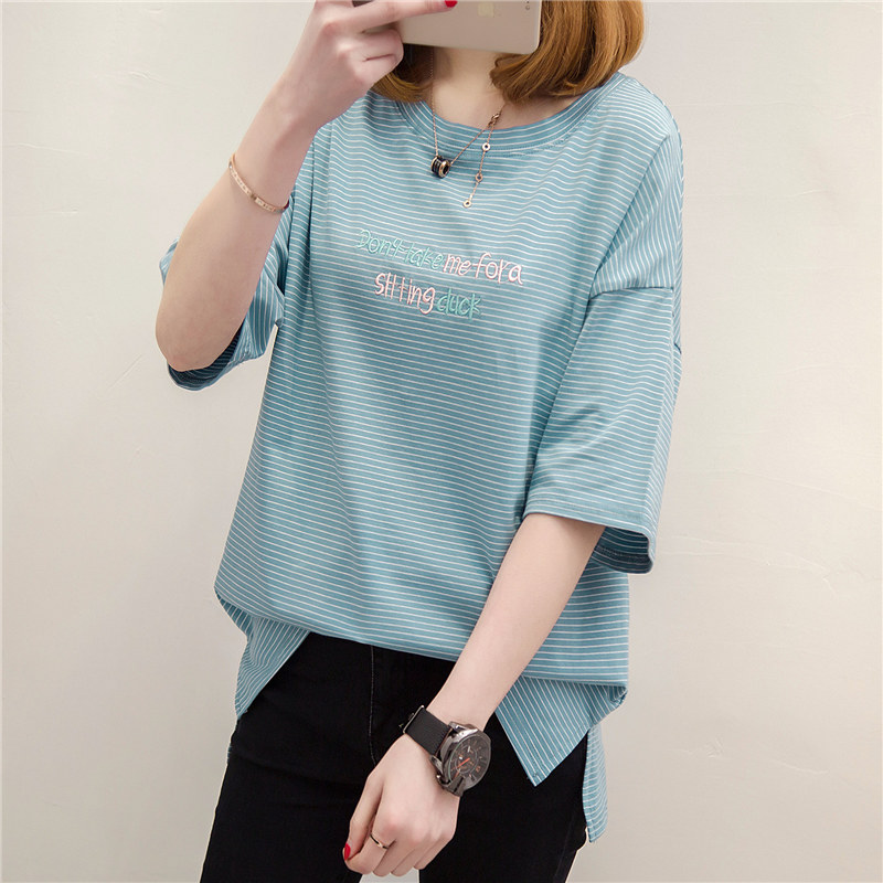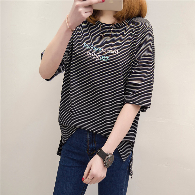 條紋短袖t恤女寬松打底衫女夏季韓版學生女裝新款女衣服百搭