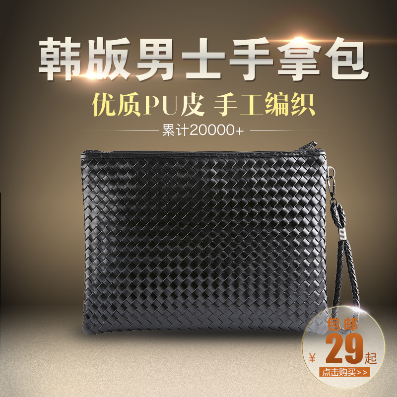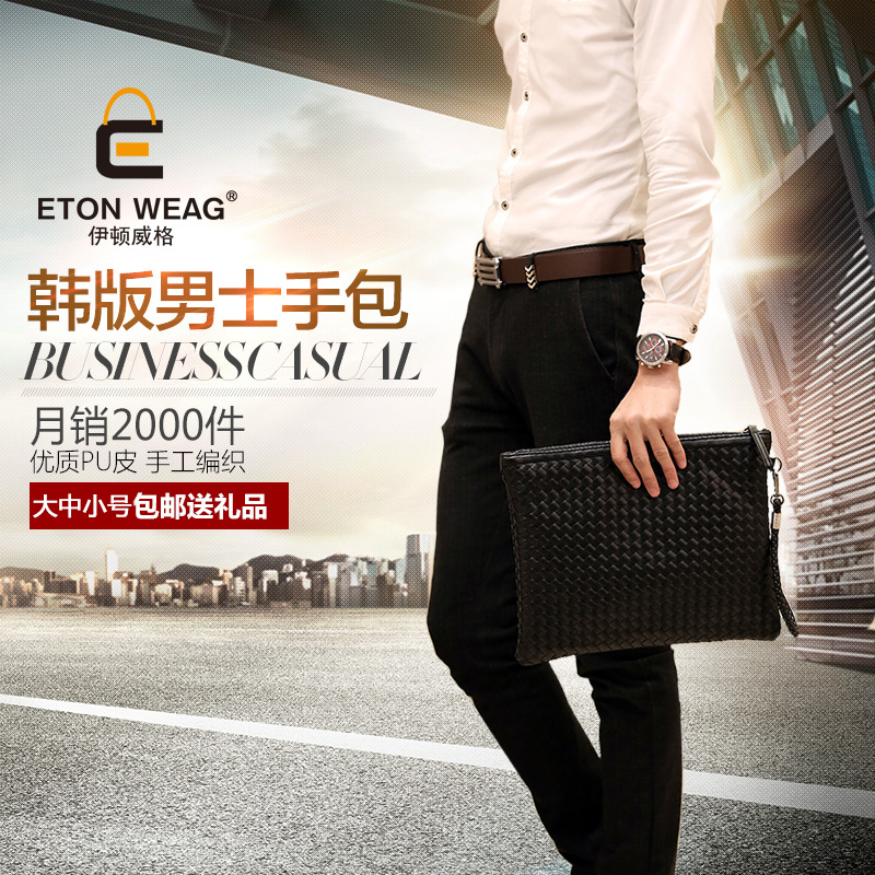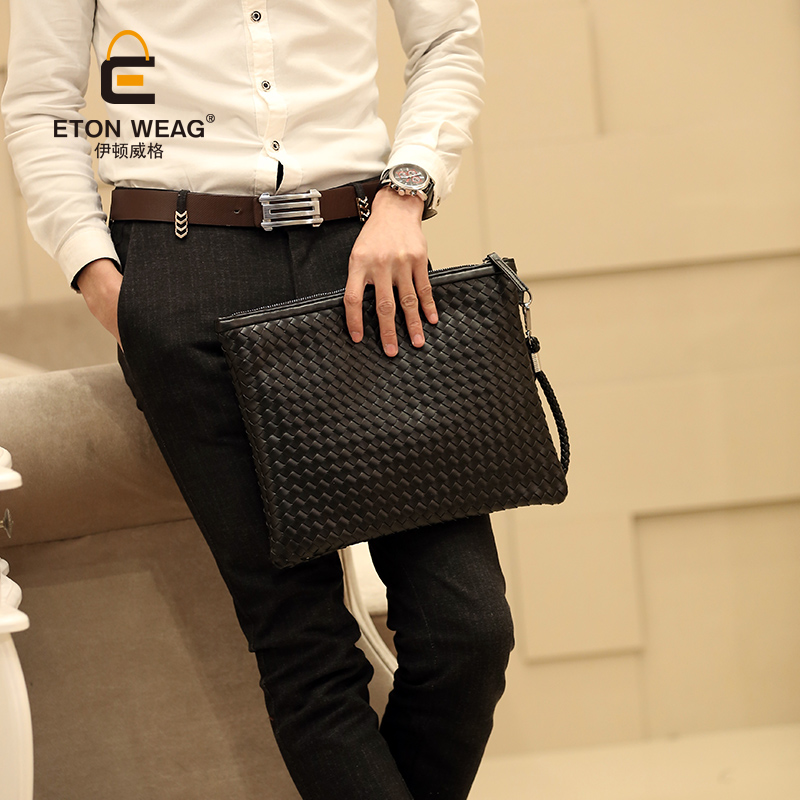 / 韓版男士時尚手包手工編織潮男包女信封手拿包手抓包A4文件包新