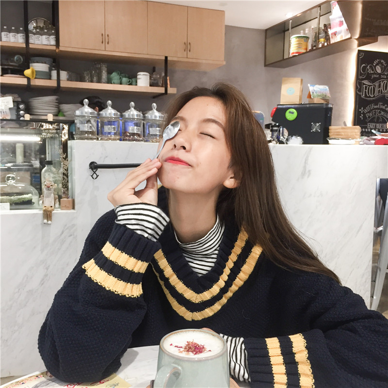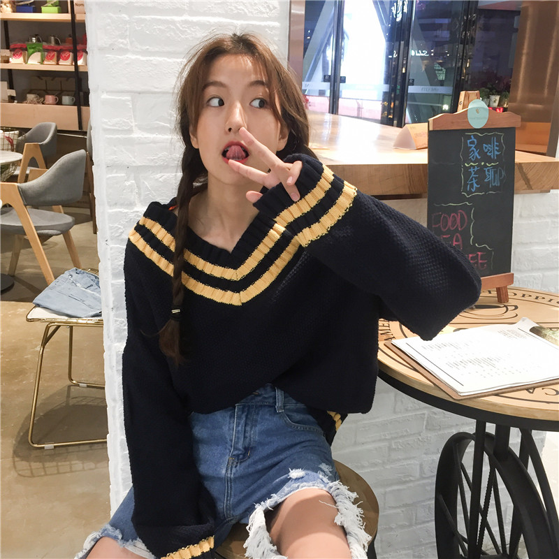 / 秋冬2018新款韓版慵懶風寬松撞色網紅套頭馬海毛針織衫毛衣外套女