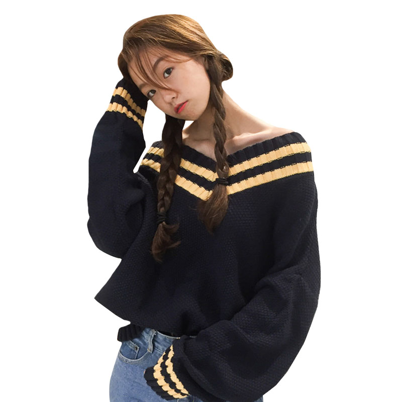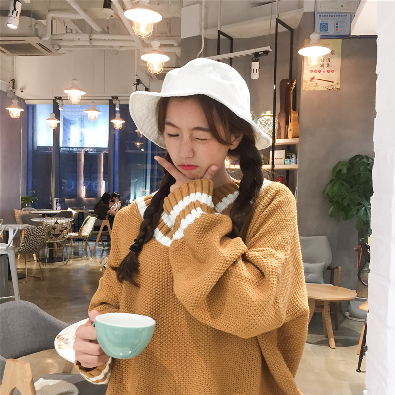秋冬2018新款韓版慵懶風寬松撞色網紅套頭馬海毛針織衫毛衣外套女