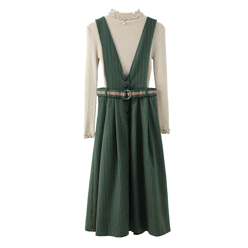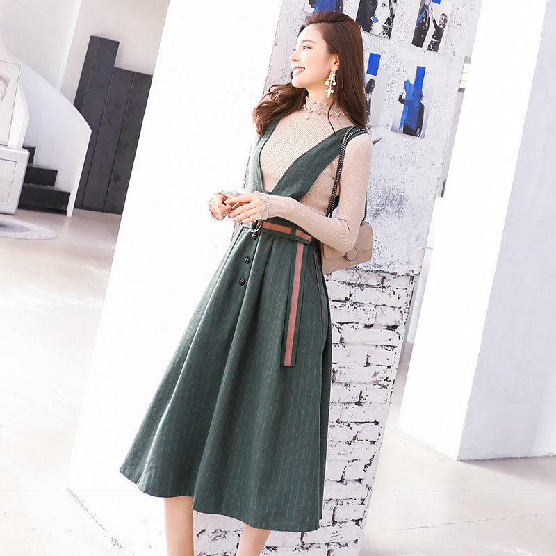 / 針織連衣裙秋裝女2018新款毛衣配背帶裙子兩件套裝秋冬季收腰長裙
