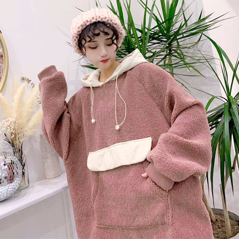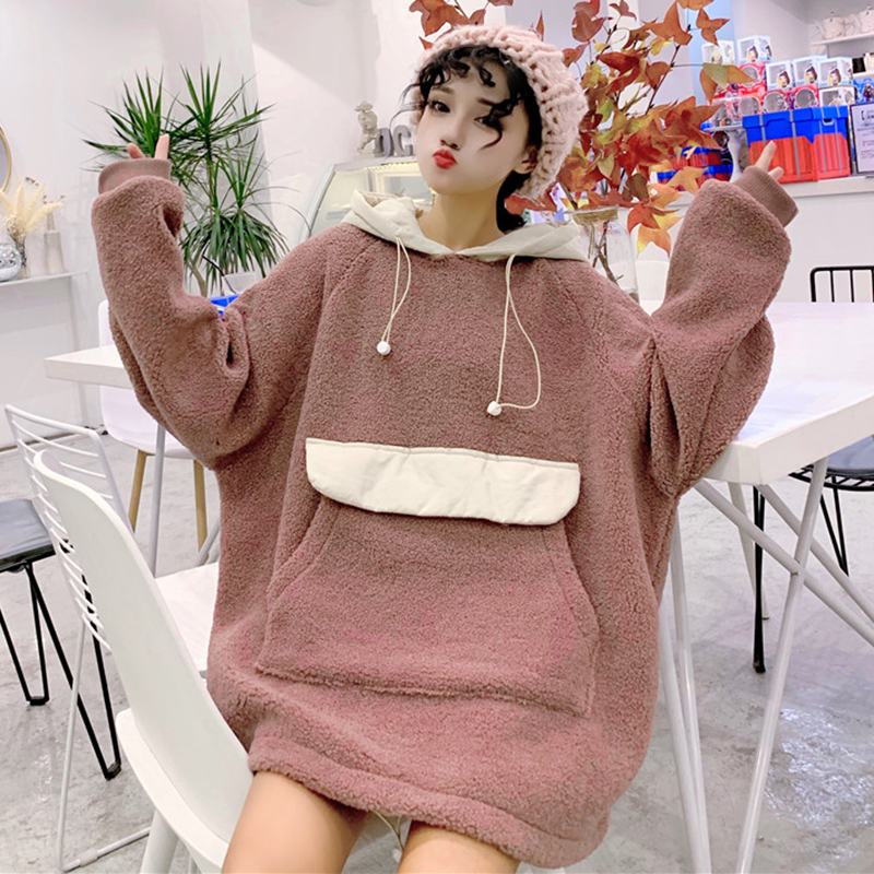 / 秋裝女2018新款韓版中長款連帽衛衣學生oversize羊羔毛外套上衣潮