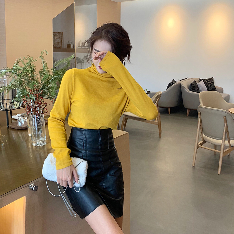 / chic秋季新款韓版上衣女裝百搭修身顯瘦高領長袖復古針織打底衫潮