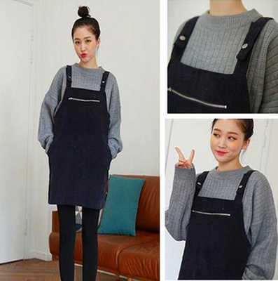 2017春夏韓版復古學院風純色口袋顯瘦燈芯絨背帶裙吊帶連衣裙女潮