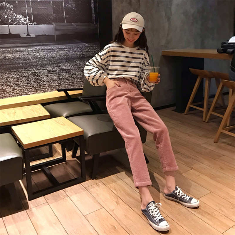 / 2018新款秋冬韓版燈芯絨休閑褲闊腿褲寬松直筒褲九分褲學生褲子女