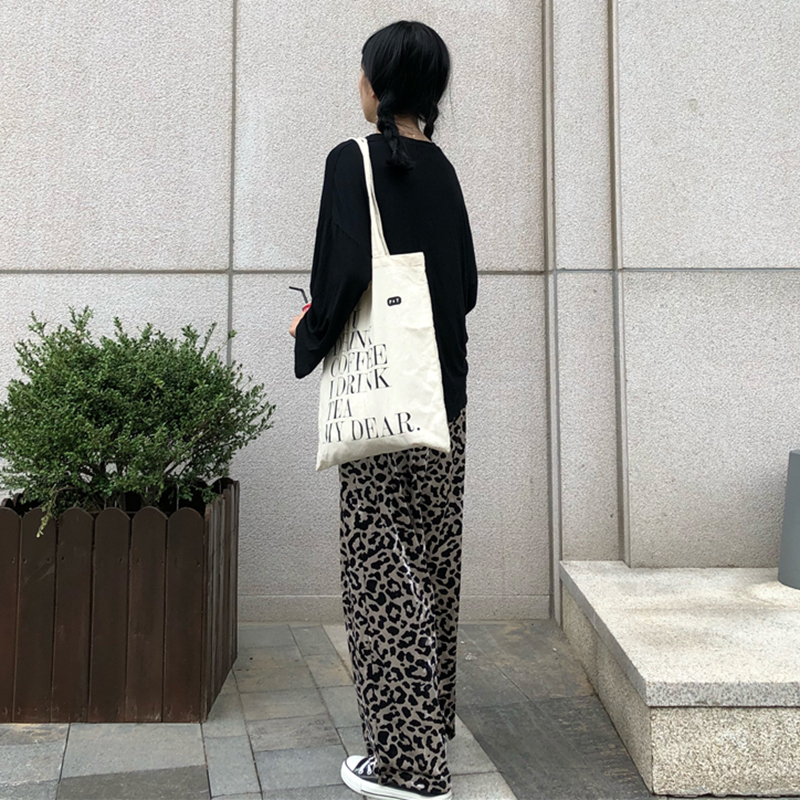/ 褲子女秋裝2018新款復古豹紋直筒休閑褲時尚氣質高腰寬松闊腿長褲