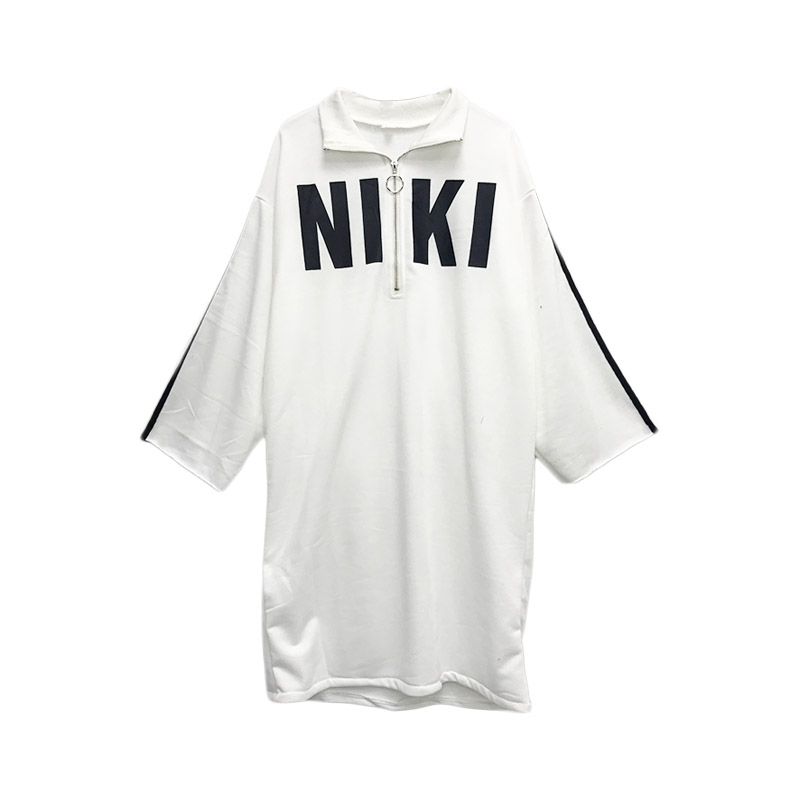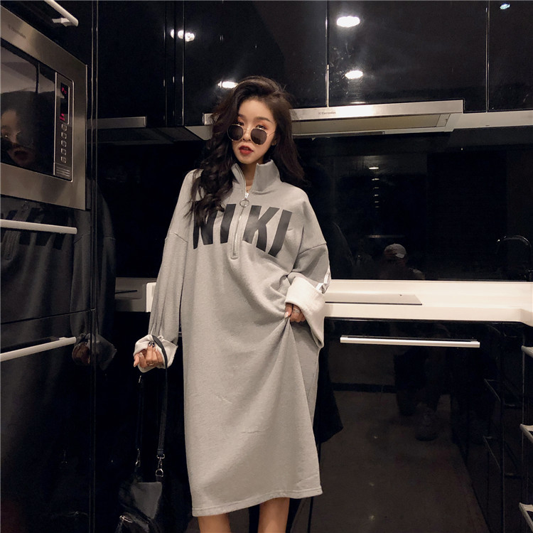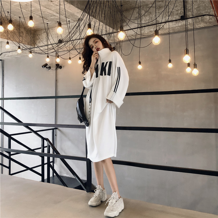 衛衣2018新款女長袖韓版寬松顯瘦oversize印花半高領慵懶長款裙子