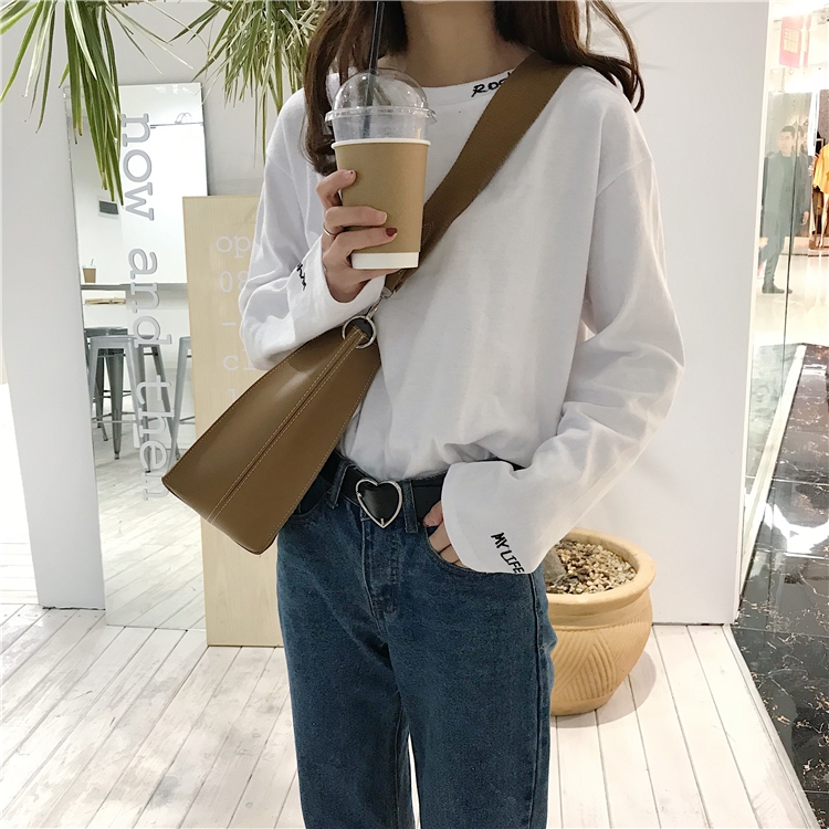 秋裝女裝韓版寬松復古簡約字母刺繡長袖純棉T恤學生上衣打底衫潮