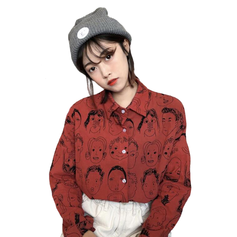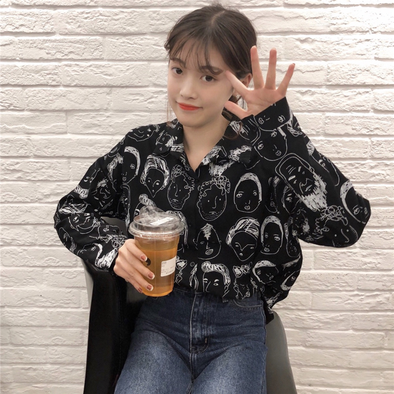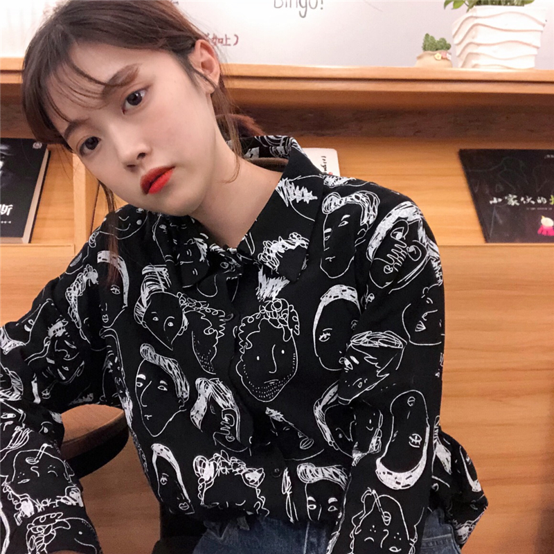 / 秋裝女裝韓版氣質小清新可愛卡通圖案長袖襯衫休閑學生打底衫襯衣