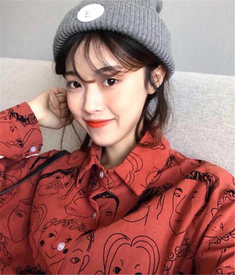 秋裝女裝韓版氣質小清新可愛卡通圖案長袖襯衫休閑學生打底衫襯衣