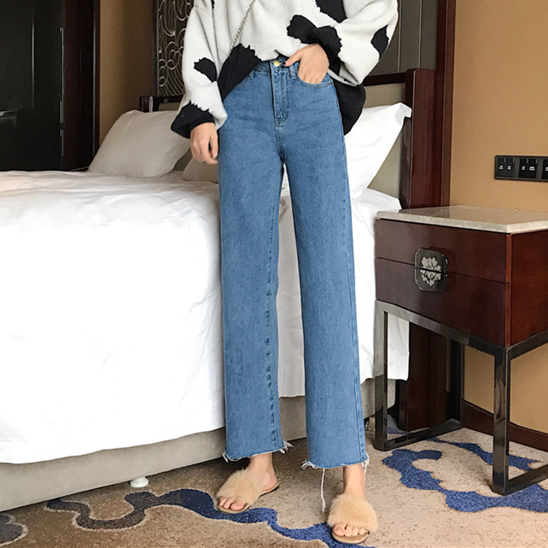 怪味少女直筒褲女秋冬裝2018新款韓版學生高腰寬松顯瘦闊腿長褲子