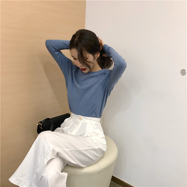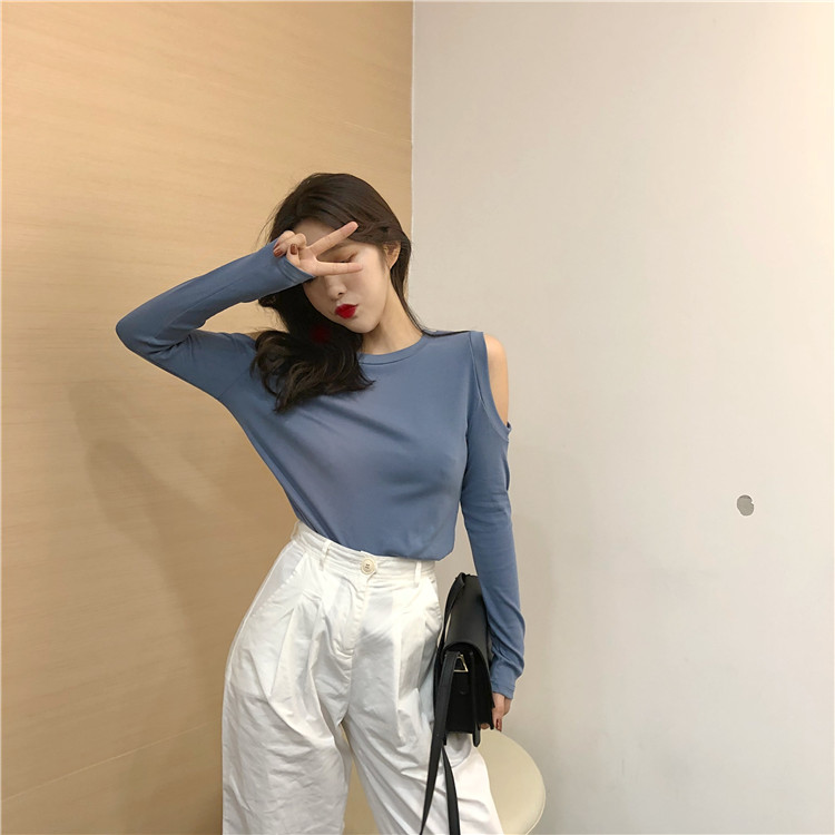 / 上衣女2018新款港味復古小清新顯瘦百搭純色chic韓風露肩長袖T恤