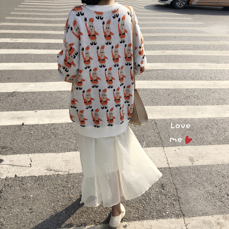 / 港味chic圣誕老人寬松長袖套頭毛衣女冬裝2018新款寬松針織衫外套