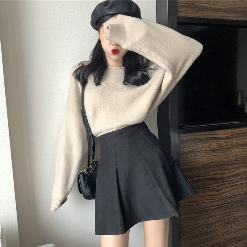 / 高腰顯瘦毛呢半身裙秋裝女2018新款黑色A字短裙學生休閑百褶裙子