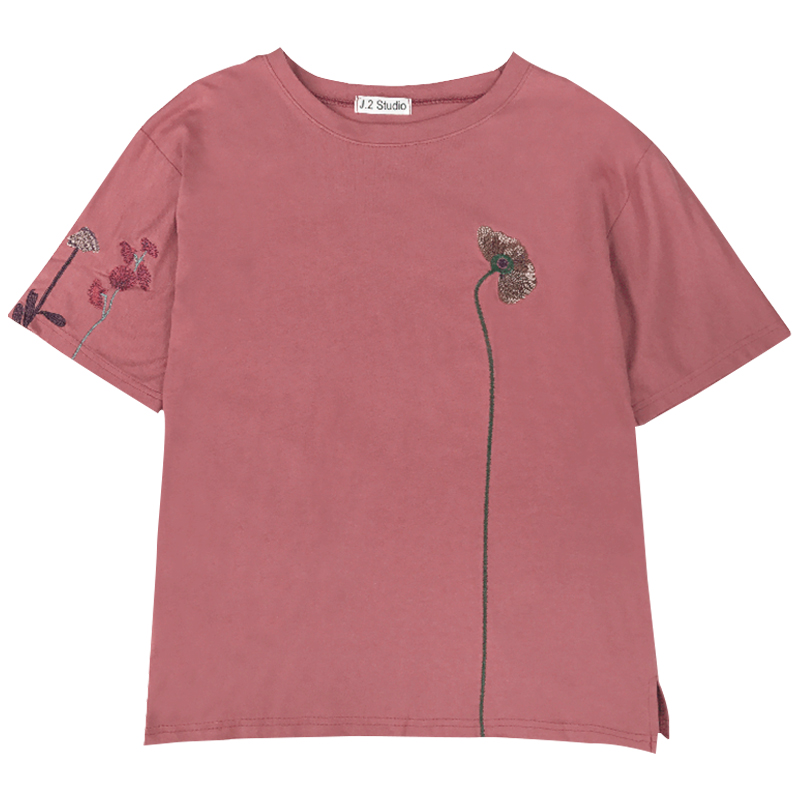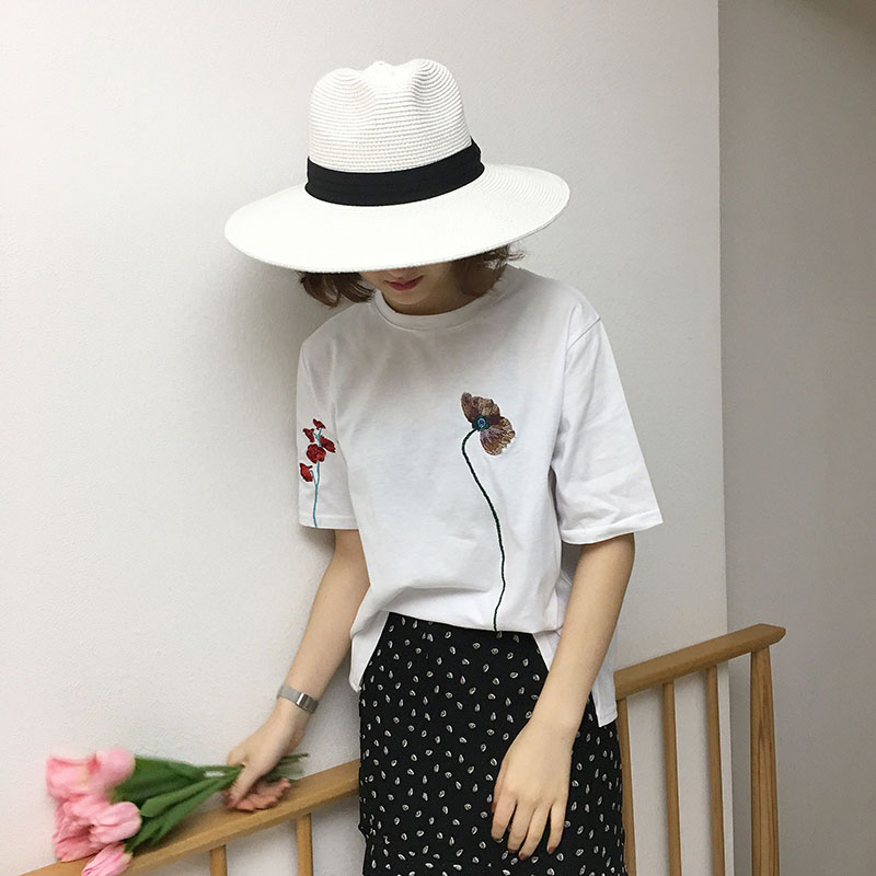 / 春裝新款女裝韓版時尚刺繡花朵休閑上衣百搭寬松短袖T恤女打底衫