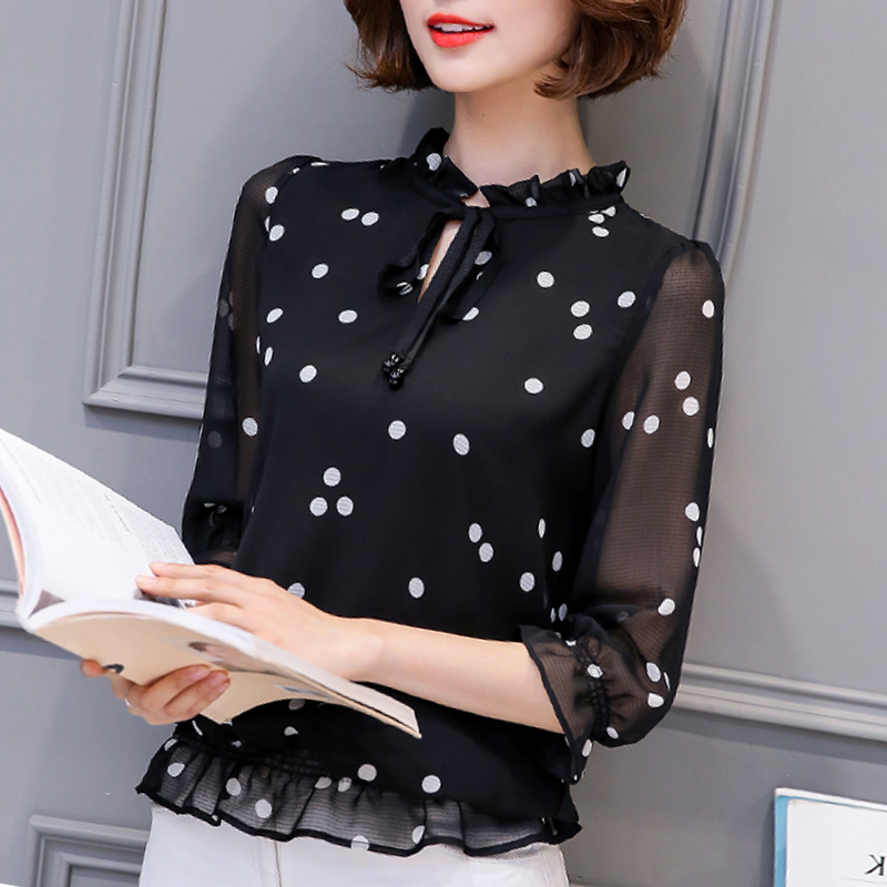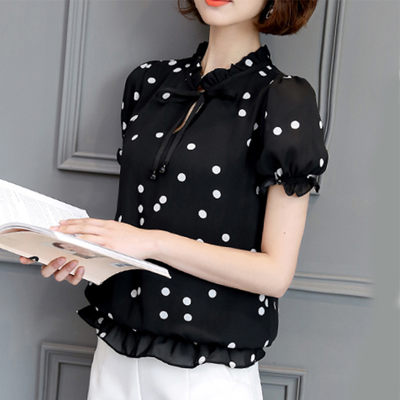 雪紡衫女2017春夏裝女裝百搭韓版寬松大碼小衫上衣短袖打底衫學