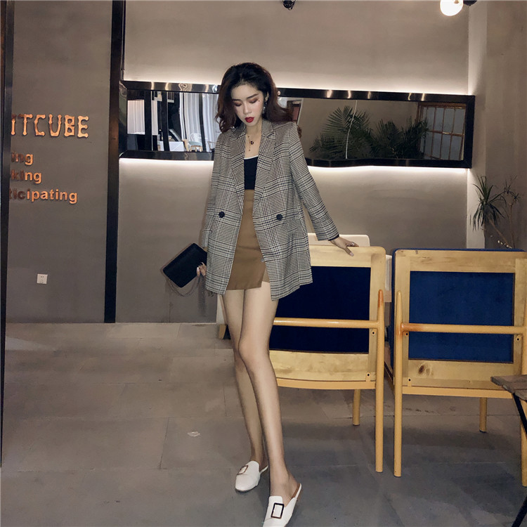 / 小香風韓版chic港風復古早秋新款氣質時尚百搭格子兩粒扣西服外套