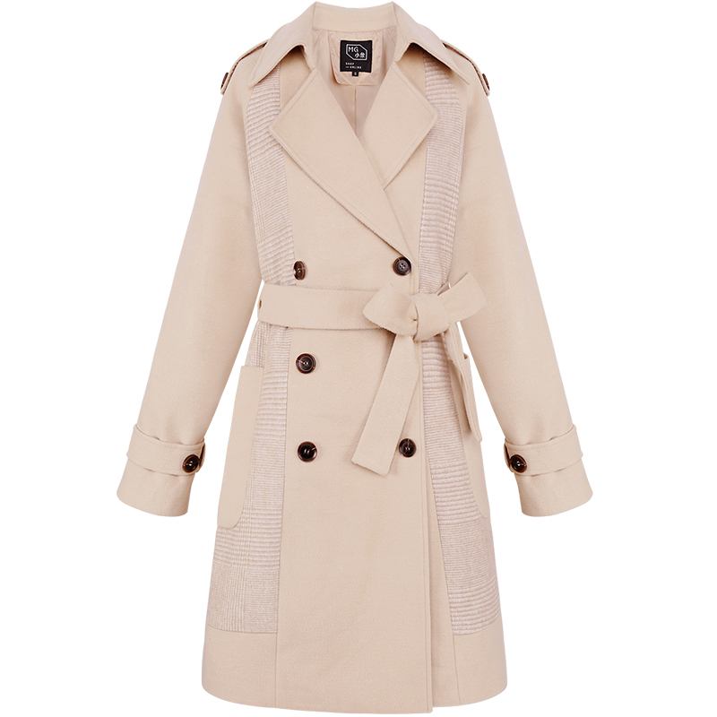 / MG小象收腰顯瘦毛呢外套女冬季2018新款中長款拼接蝴蝶結呢子大衣