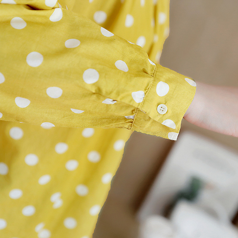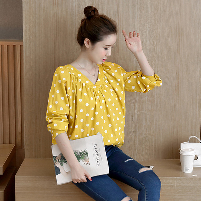 / 春季新款V領襯衫女長袖大碼寬松顯瘦波點襯衣韓范百搭上衣潮
