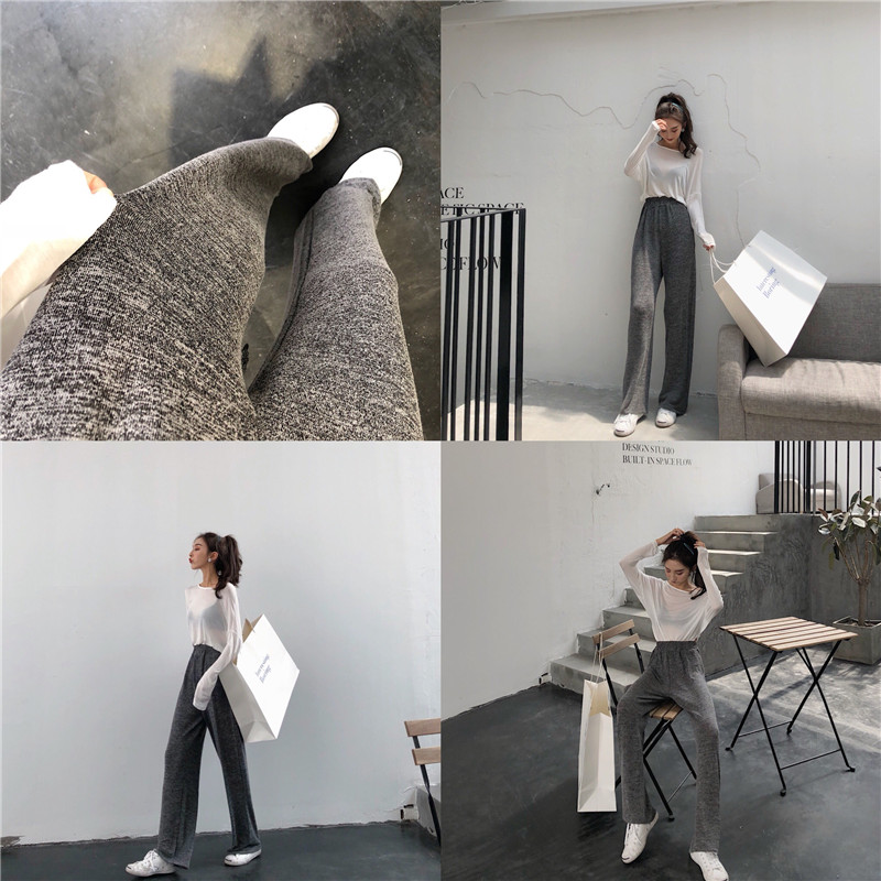 / 秋裝女2018新款潮流純色夏季顯瘦拖地薄款針織闊腿褲長褲直筒褲子