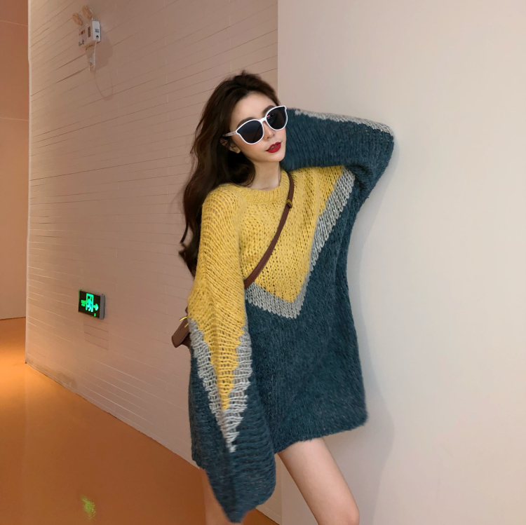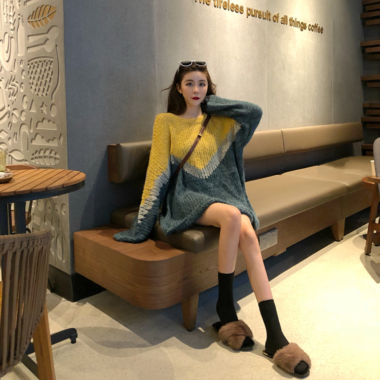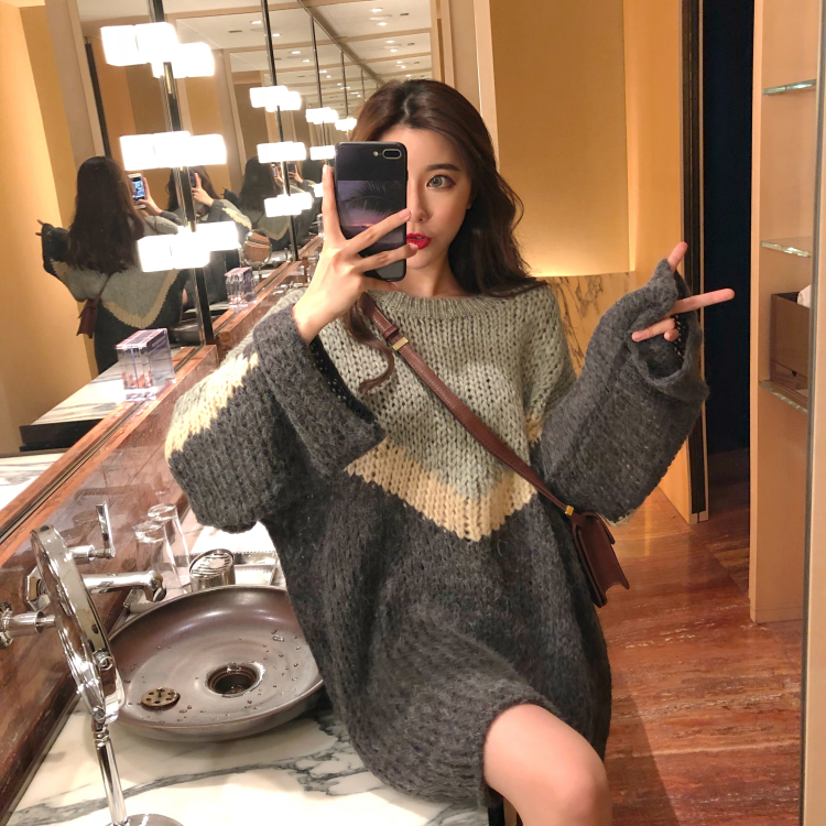 秋冬韓版時尚中長款慵懶風毛衣女套頭復古chic百搭長袖寬松上衣潮