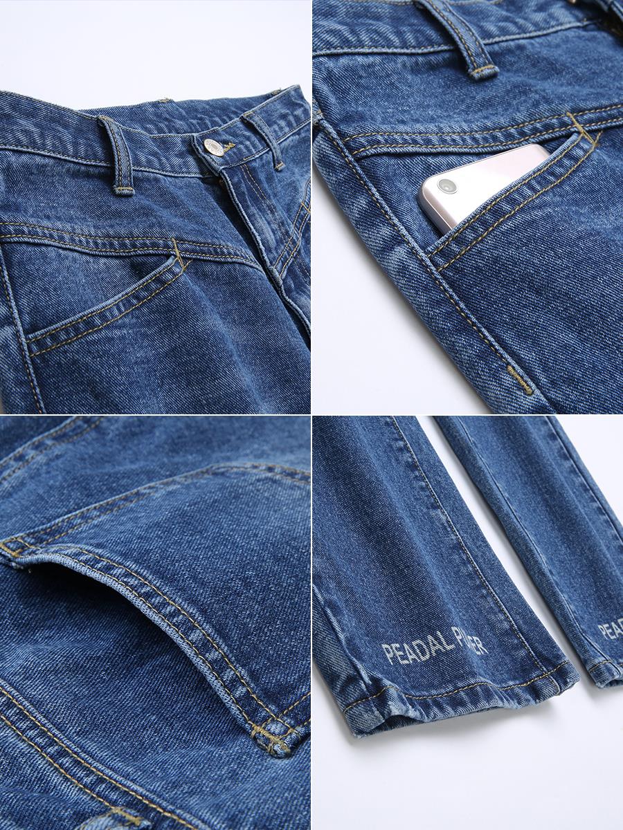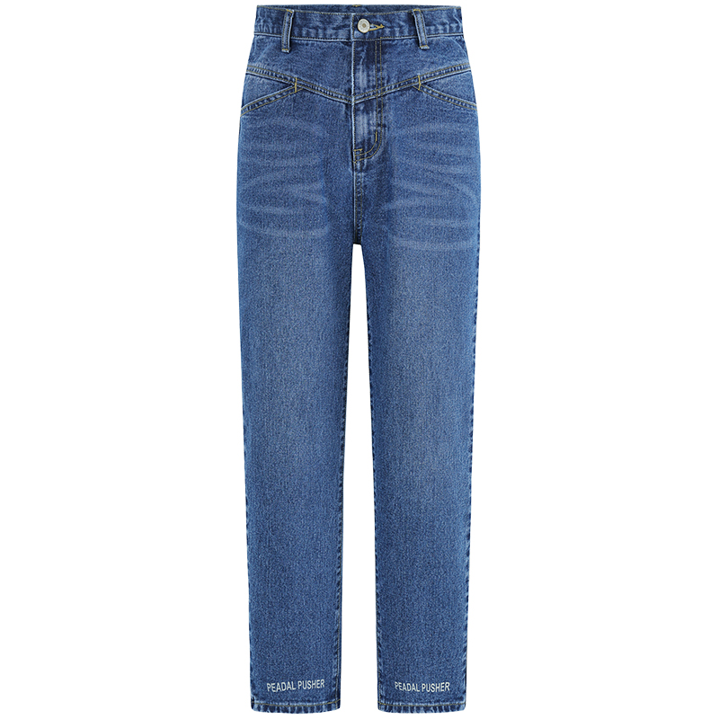 MG小象高腰牛仔褲女寬松顯瘦直筒褲2018秋冬新款港味復古chic褲子