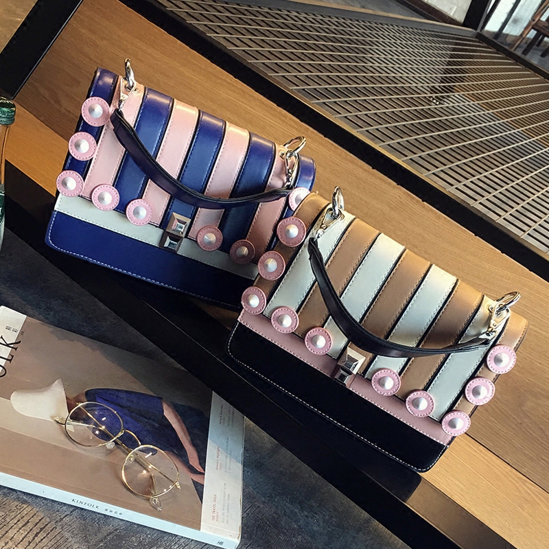 / 手提包包女新款潮撞色條紋百搭斜挎包韓版迷你小方包單肩女包