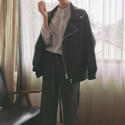 秋裝2018新款女裝機車翻領啞光PU皮衣寬松學生百搭夾克開衫短外套