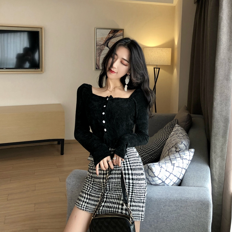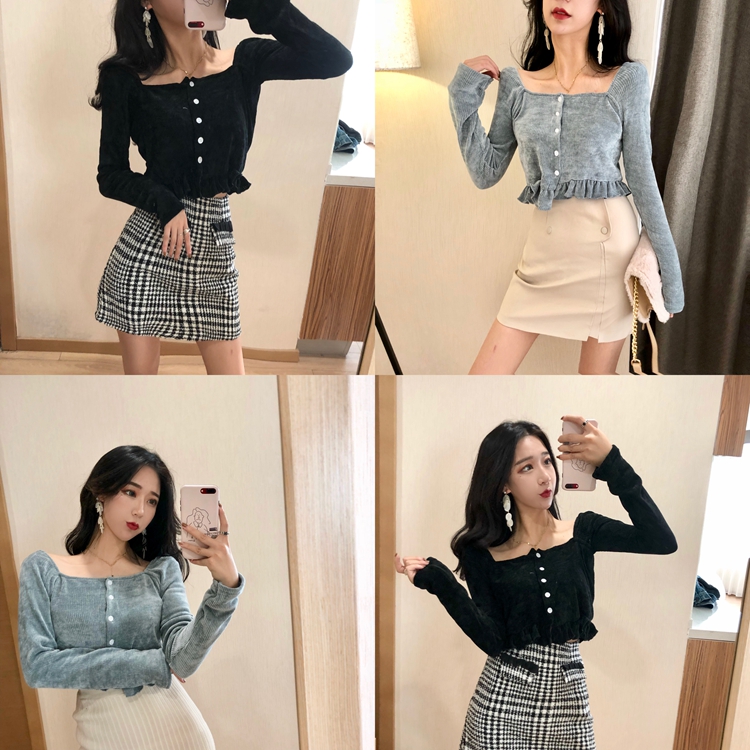 / 冬裝上衣女慵懶長袖t袖女韓版時尚百搭針織木耳邊內搭修身顯瘦Tee
