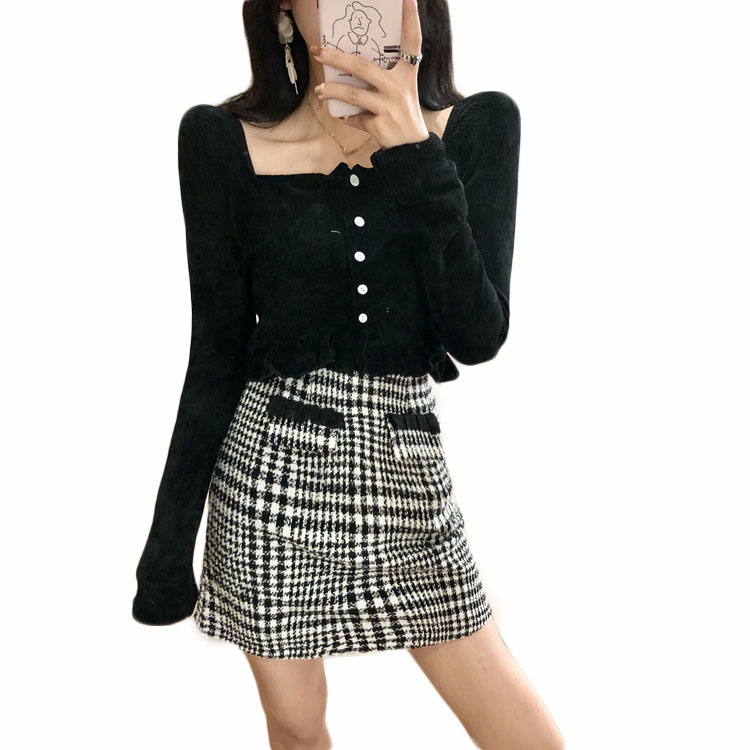 冬裝上衣女慵懶長袖t袖女韓版時尚百搭針織木耳邊內搭修身顯瘦Tee