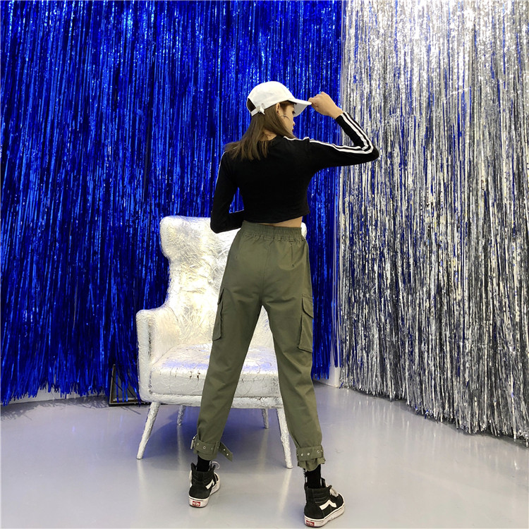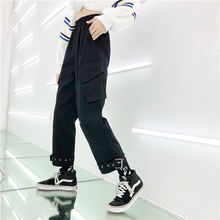/ 秋季女裝韓版復古束腳褲直筒褲哈倫褲高腰寬松休閑褲工裝褲九分褲