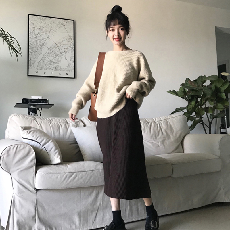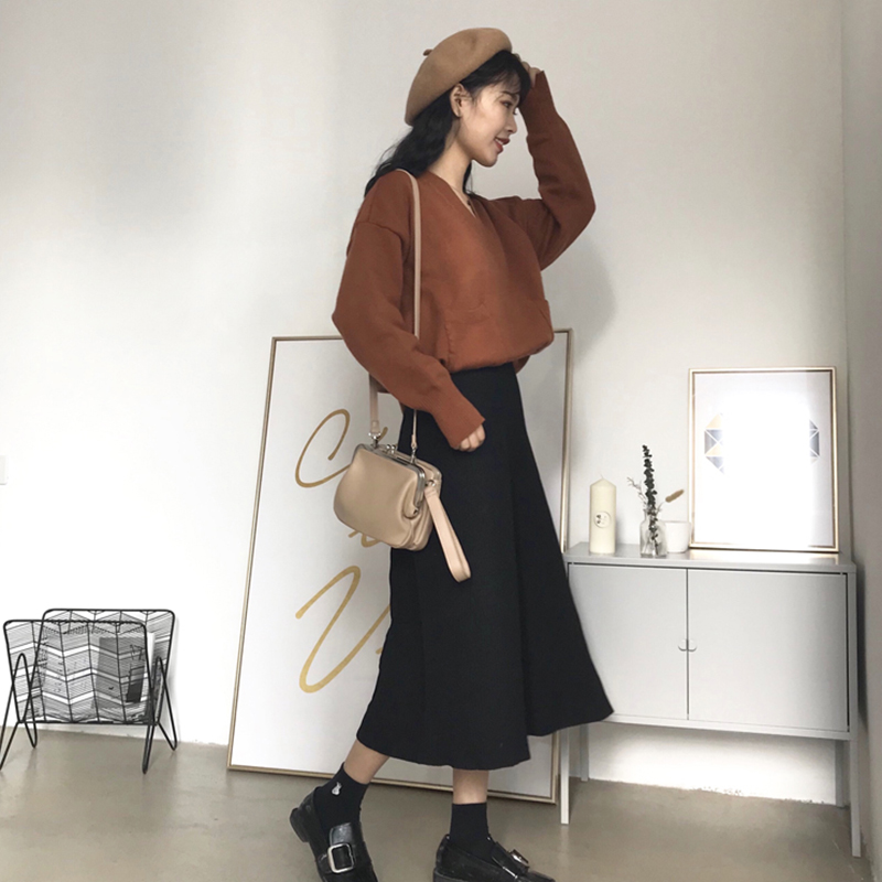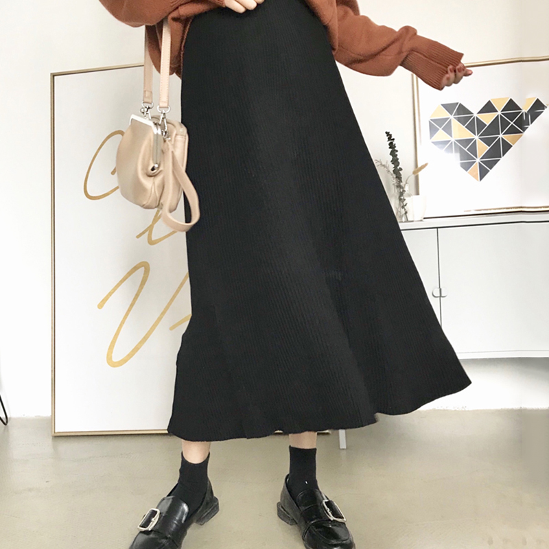 / 復古針織大擺裙秋裝女2018新款港味chic學生高腰半身裙中長A字裙