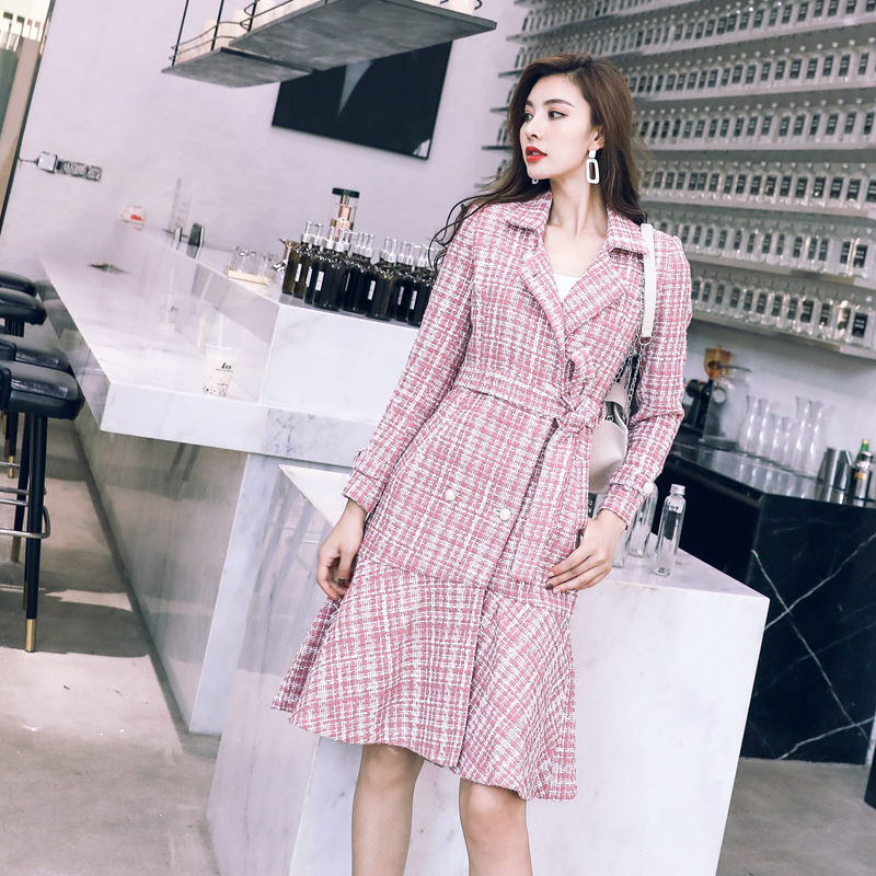 名媛氣質毛呢外套女大衣中長款新款2018韓版呢子收腰顯瘦連衣裙潮