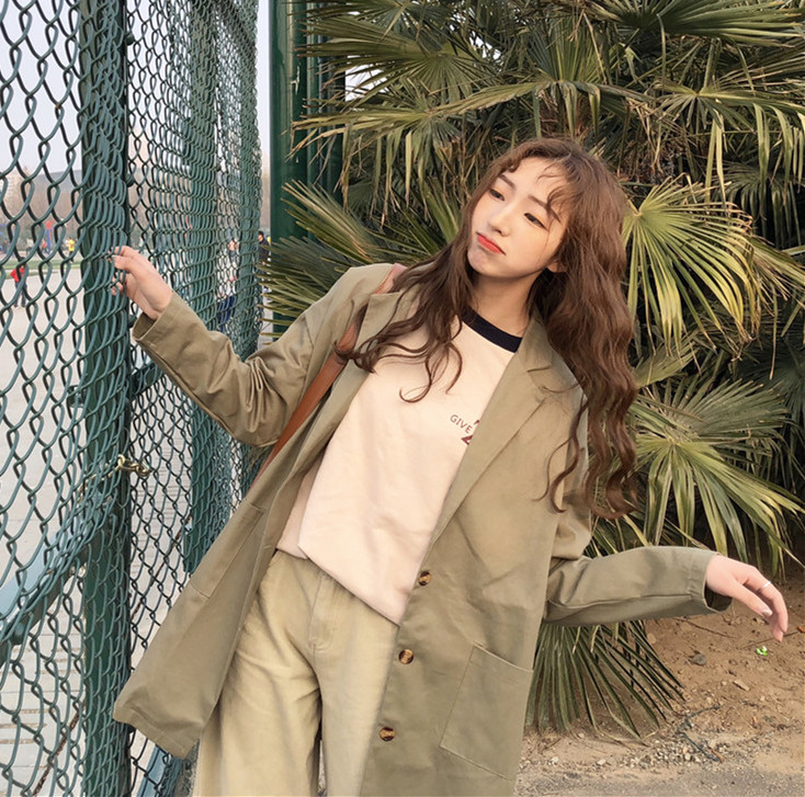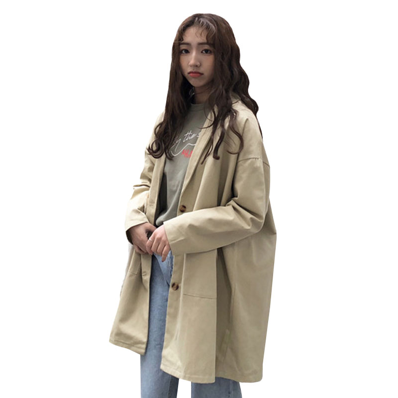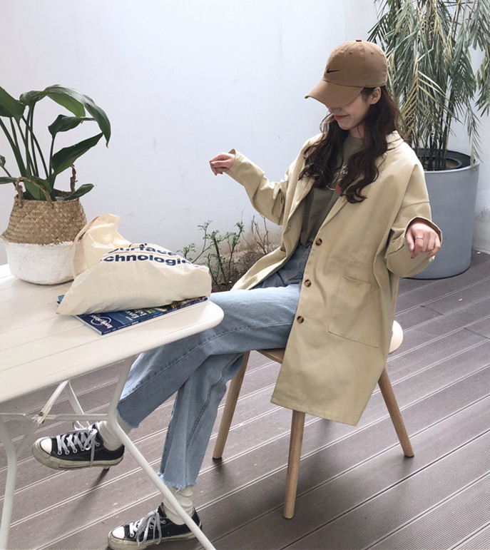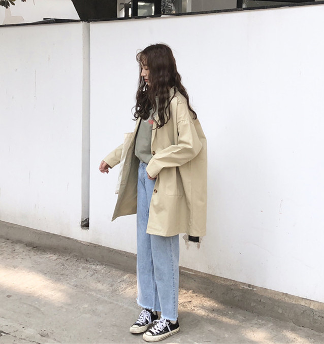 / 秋裝韓版BF風寬松復古工裝風衣中長款長袖休閑開衫夾克上衣外套女