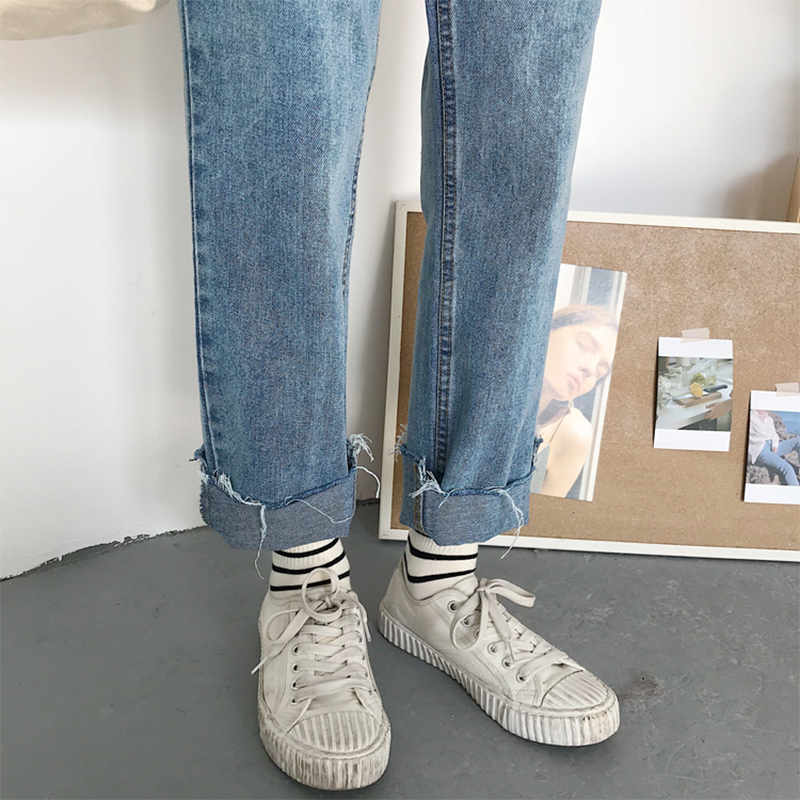 毛邊牛仔褲秋裝女2018新款韓版寬松顯瘦直筒褲學生百搭高腰長褲子