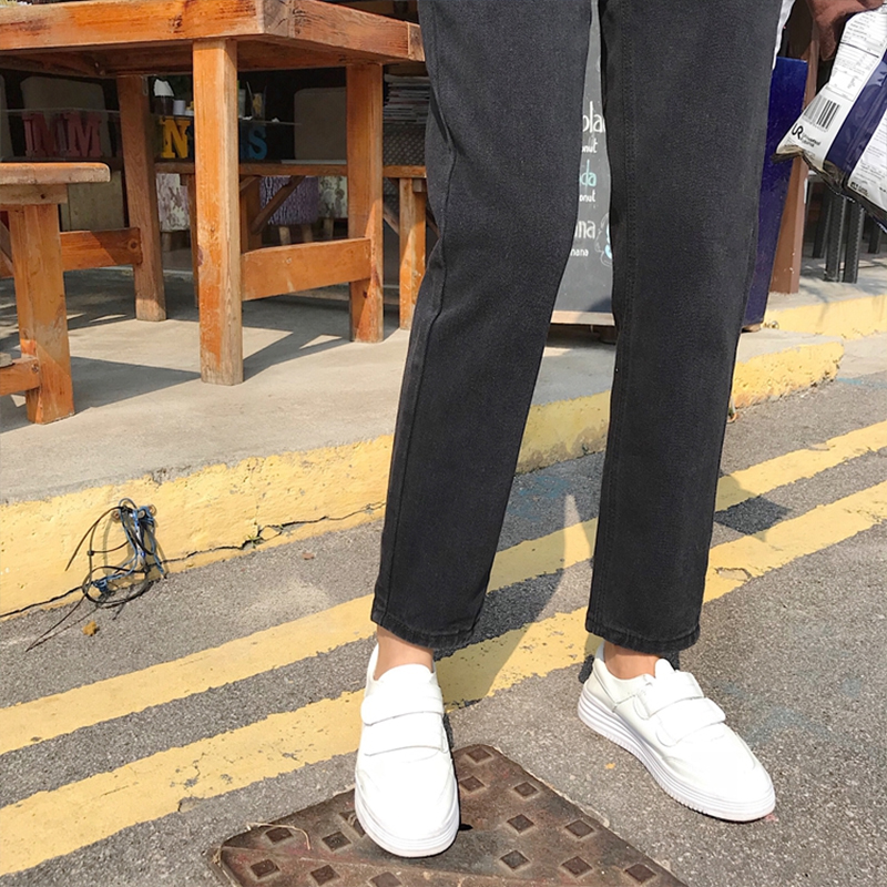 / 休閑高腰牛仔褲秋裝女2018新款韓版時尚九分褲學生寬松直筒黑褲子