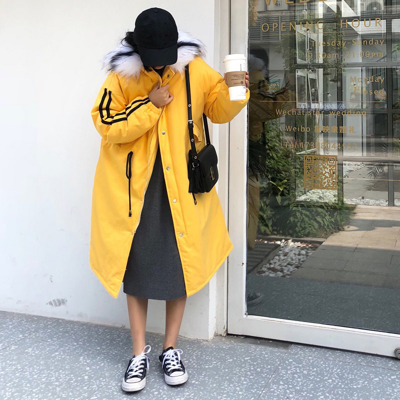 / 冬季新款韓版chic港風復古中長款毛領寬松加厚保暖面包服棉衣外套