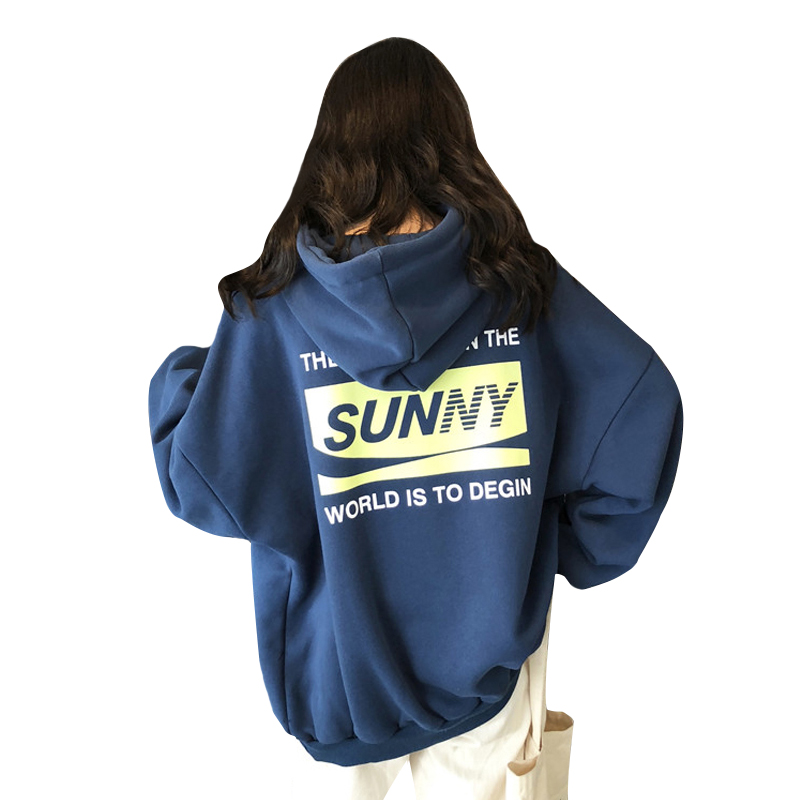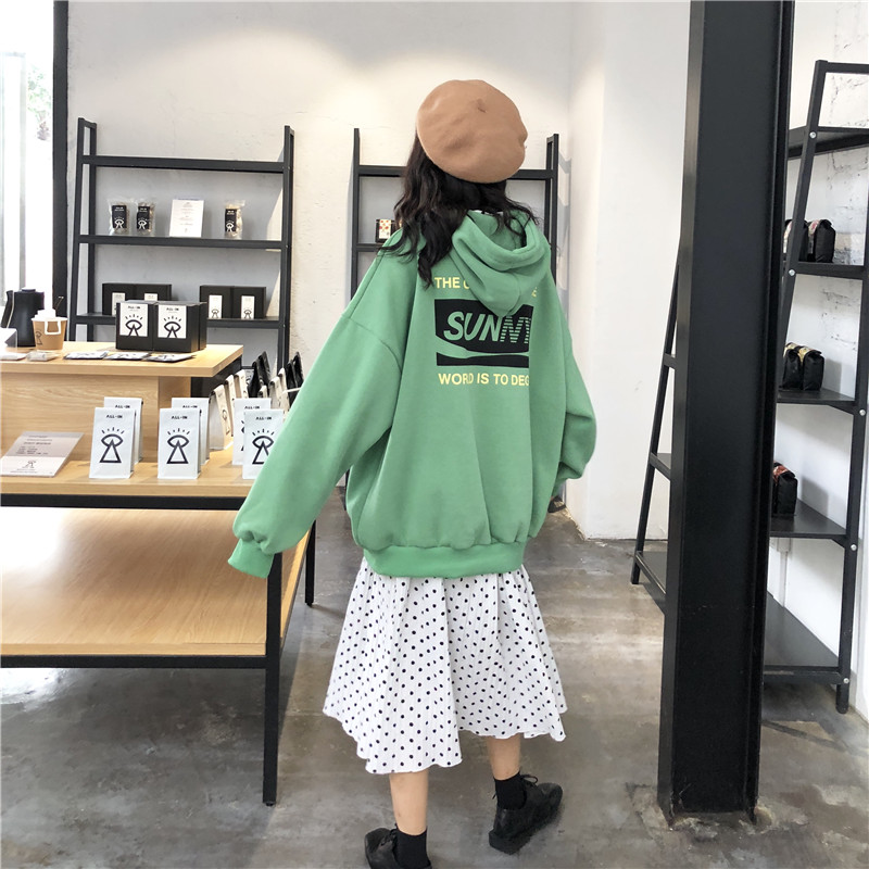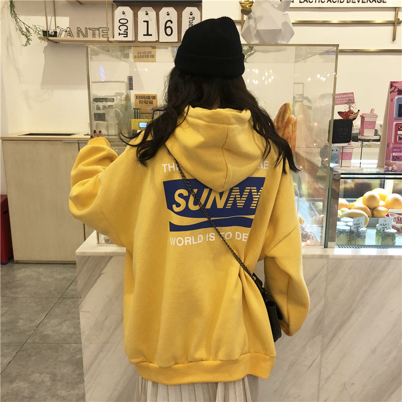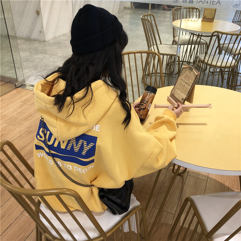 2018新款秋冬女裝韓版中長款寬松慵懶風加絨加厚字母連帽衛衣外套