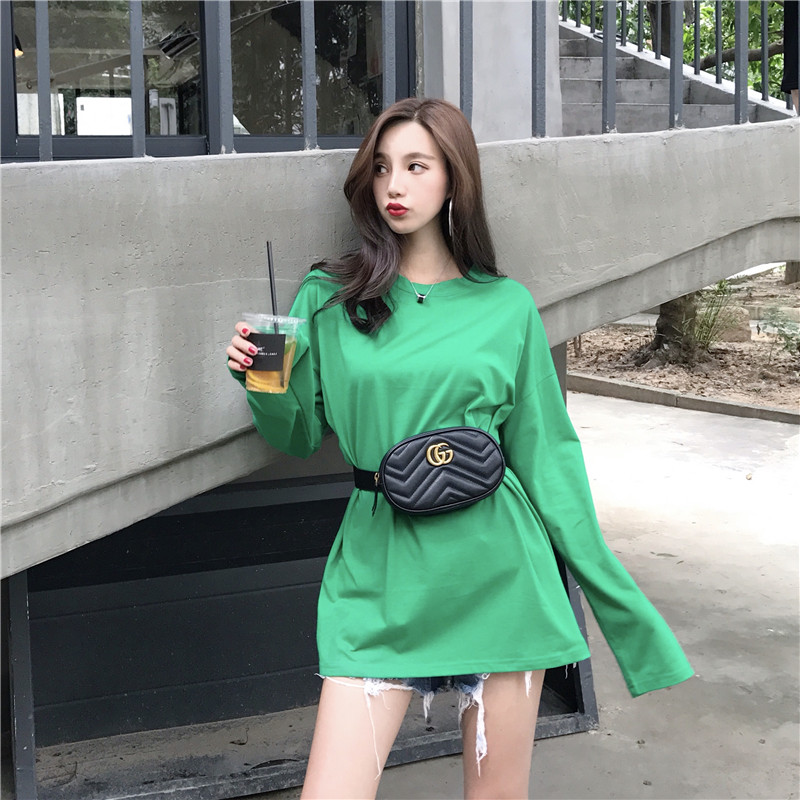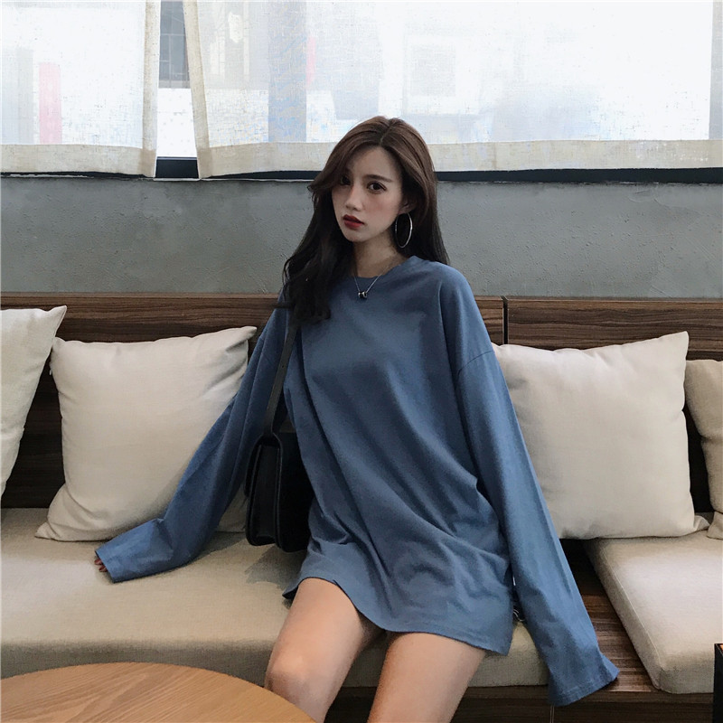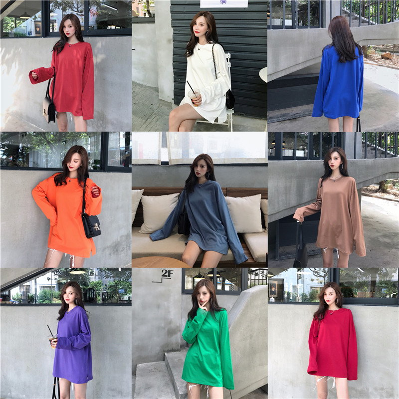 / 秋天上衣女新款時尚百搭基礎寬松馬卡龍純色圓領中長款T恤10色入