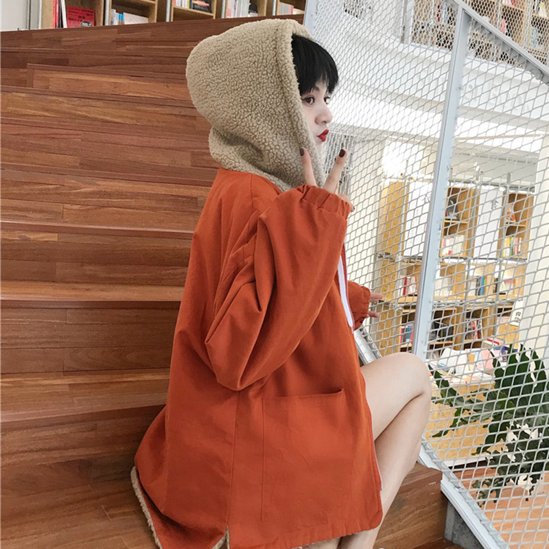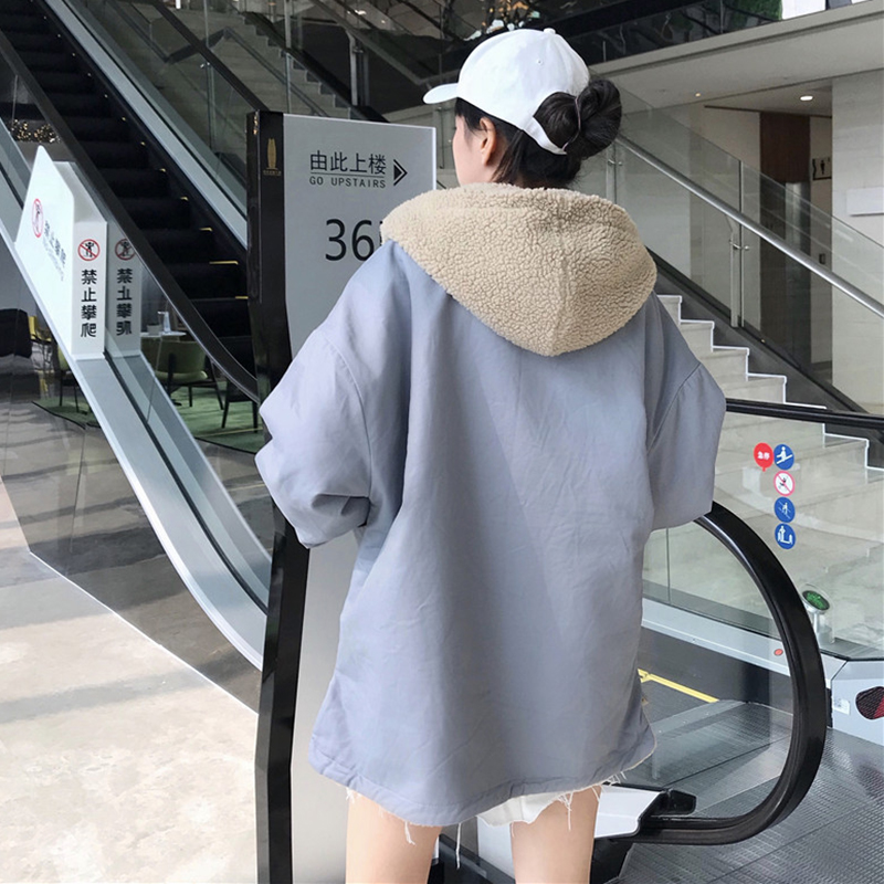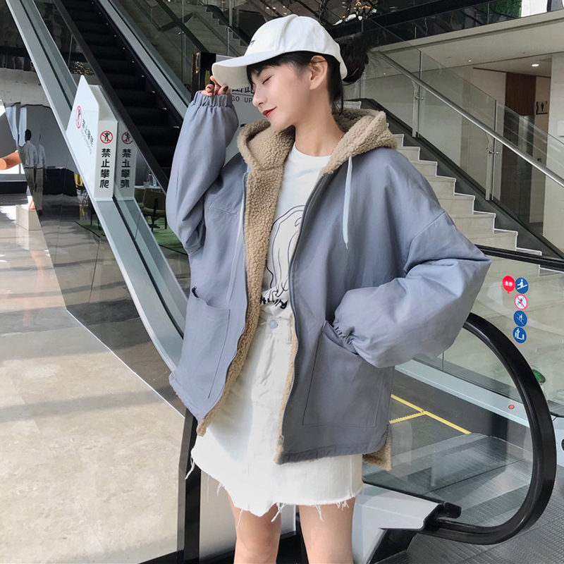學院風羊羔毛連帽棉衣服女冬裝2018新款韓版百搭寬松加厚上衣外套