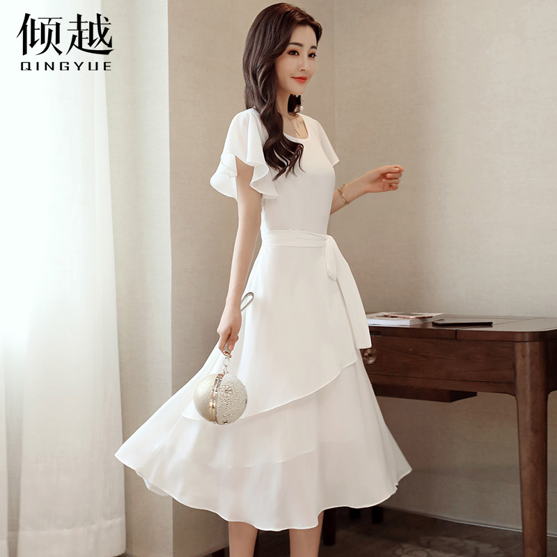 / 夏季新款女裝2017韓版顯瘦高腰大碼氣質修身雪紡連衣裙過膝長裙女
