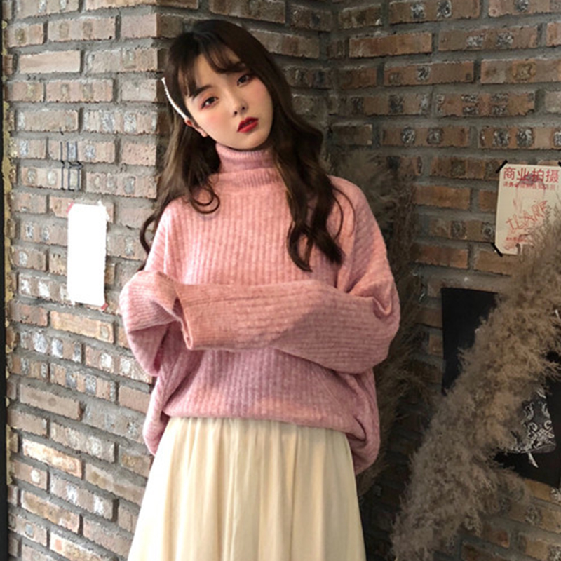 寬松加厚高領毛衣女秋冬裝2018新款學生慵懶針織外套時尚長袖上衣