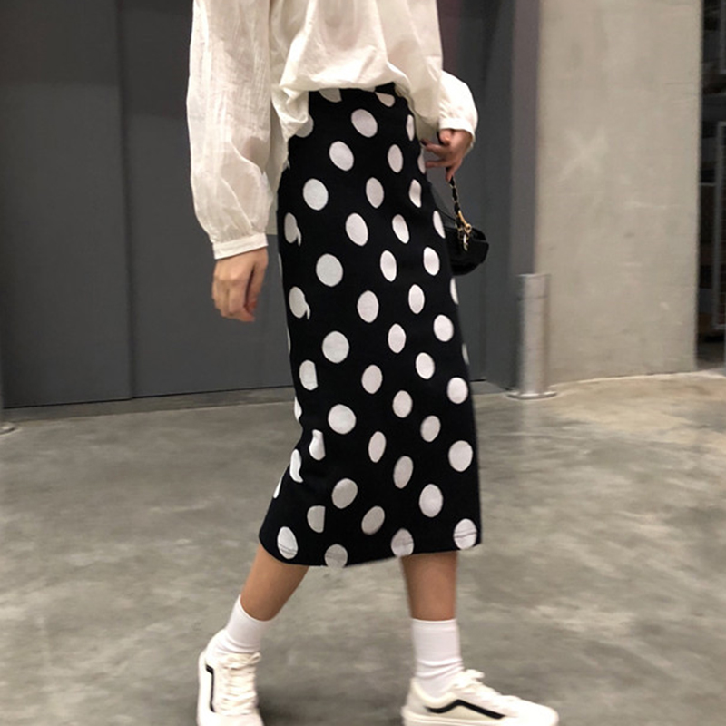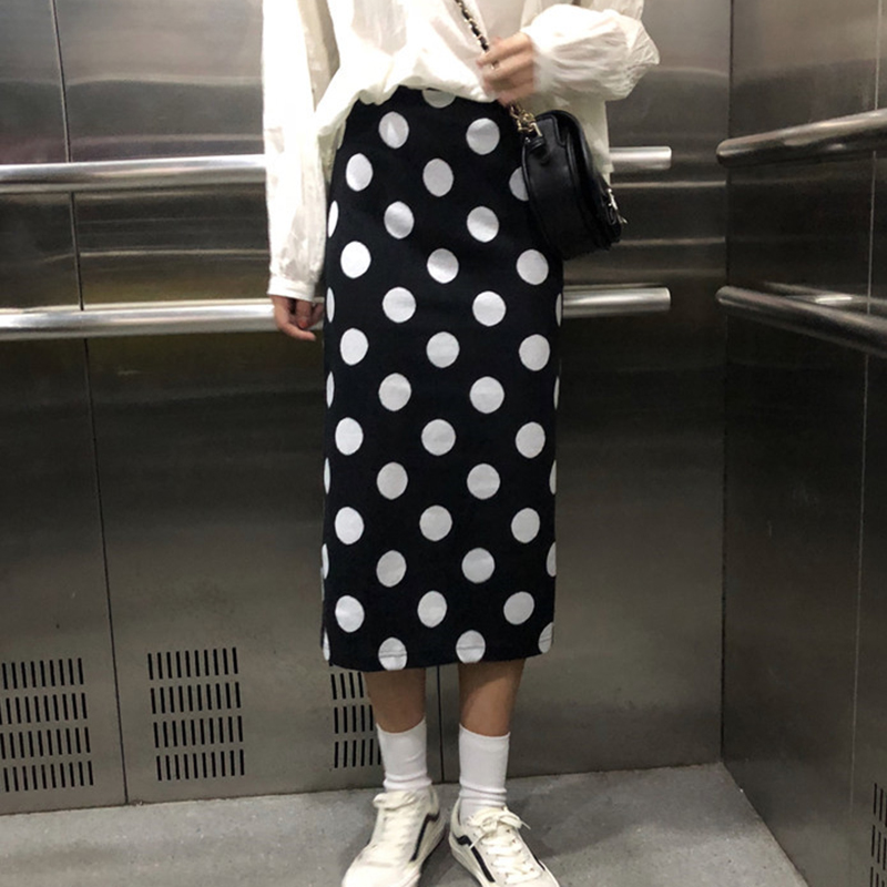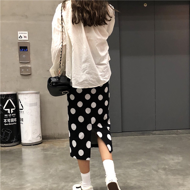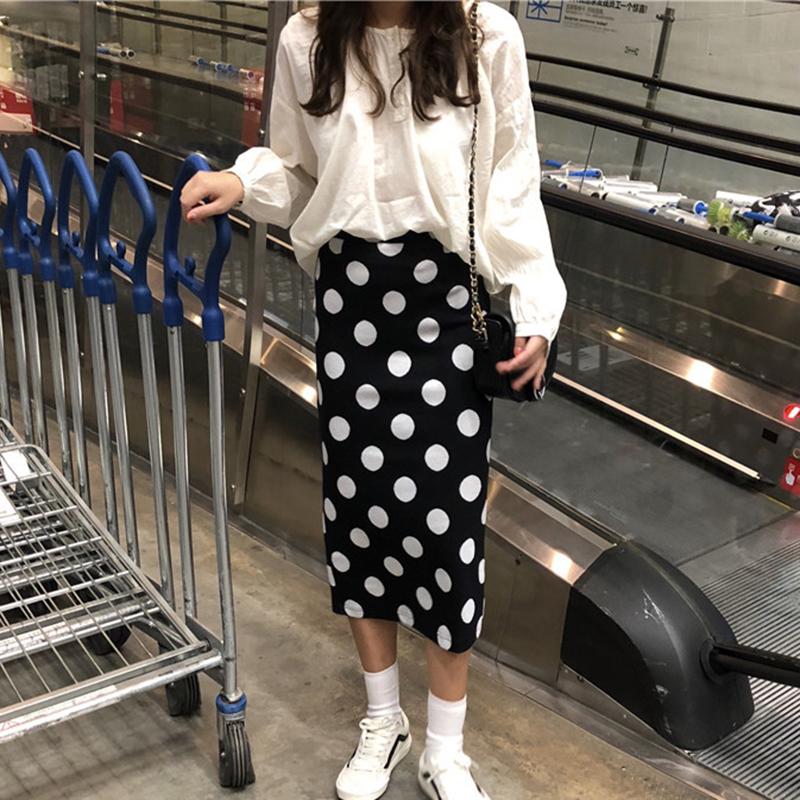 / 秋裝女2018新款韓版chic時尚高腰波點半身裙學生個性開叉中長裙子