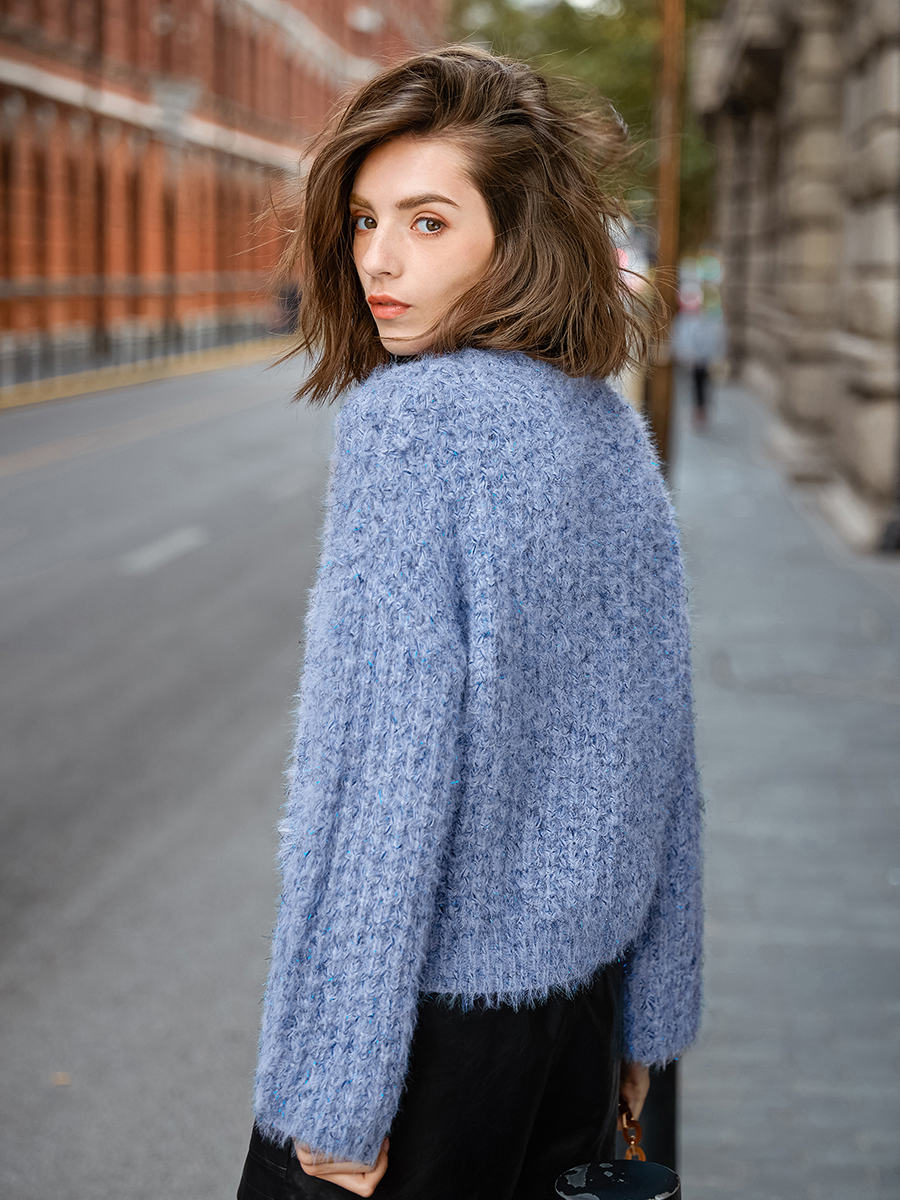/ MG小象慵懶風套頭毛衣女寬松長袖冬季2018新款藍色圓領chic上衣潮