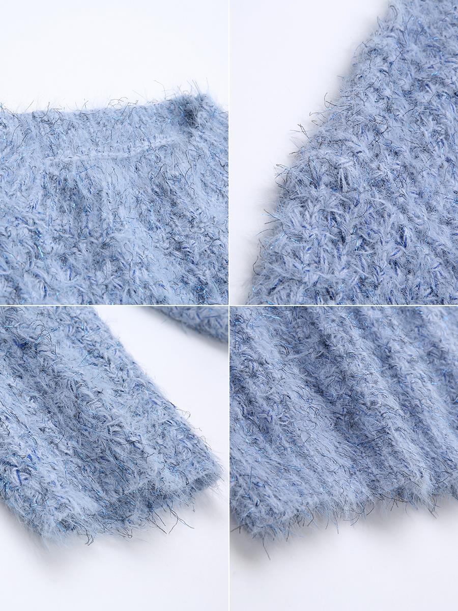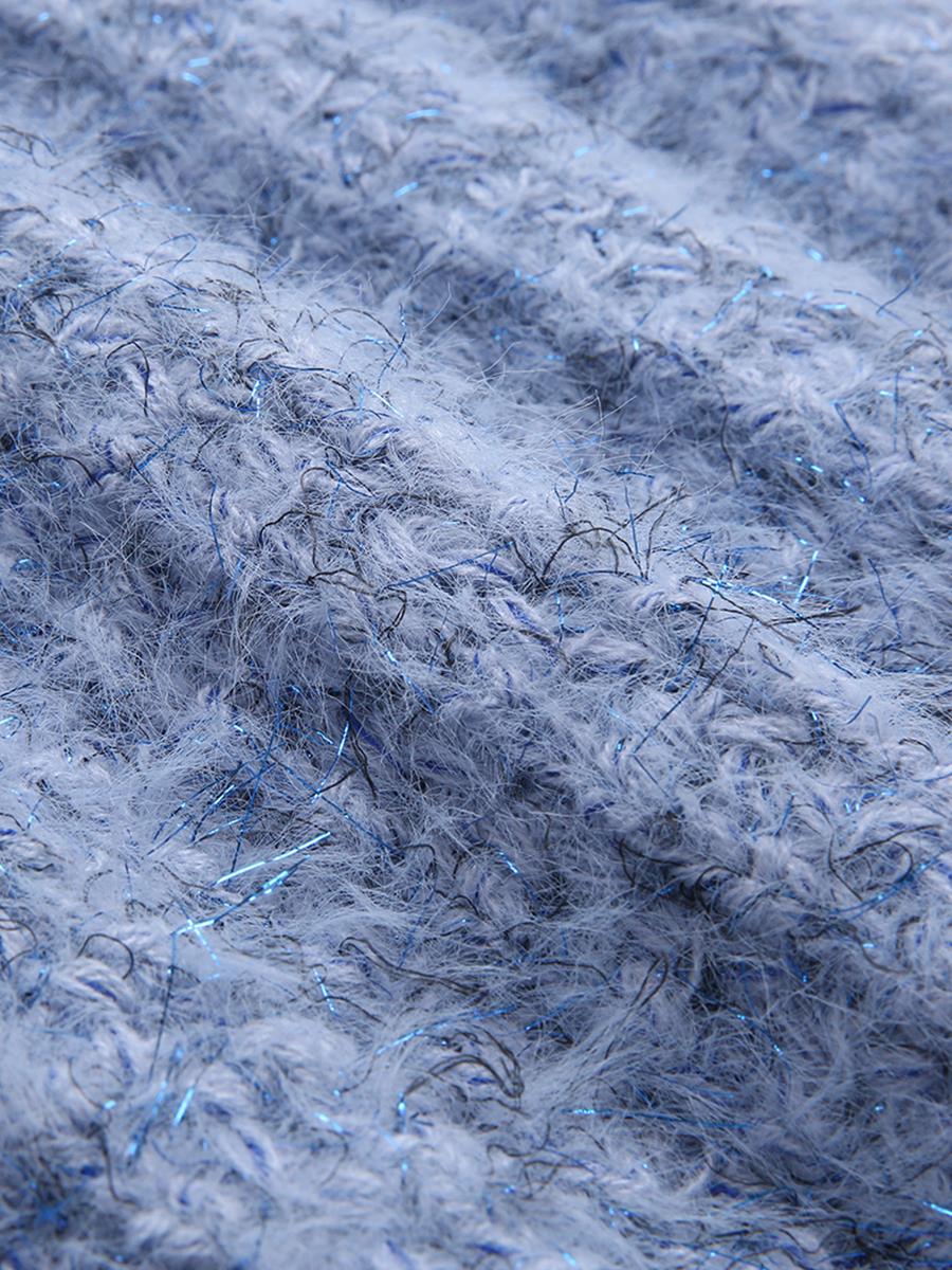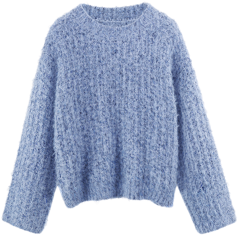 MG小象慵懶風套頭毛衣女寬松長袖冬季2018新款藍色圓領chic上衣潮