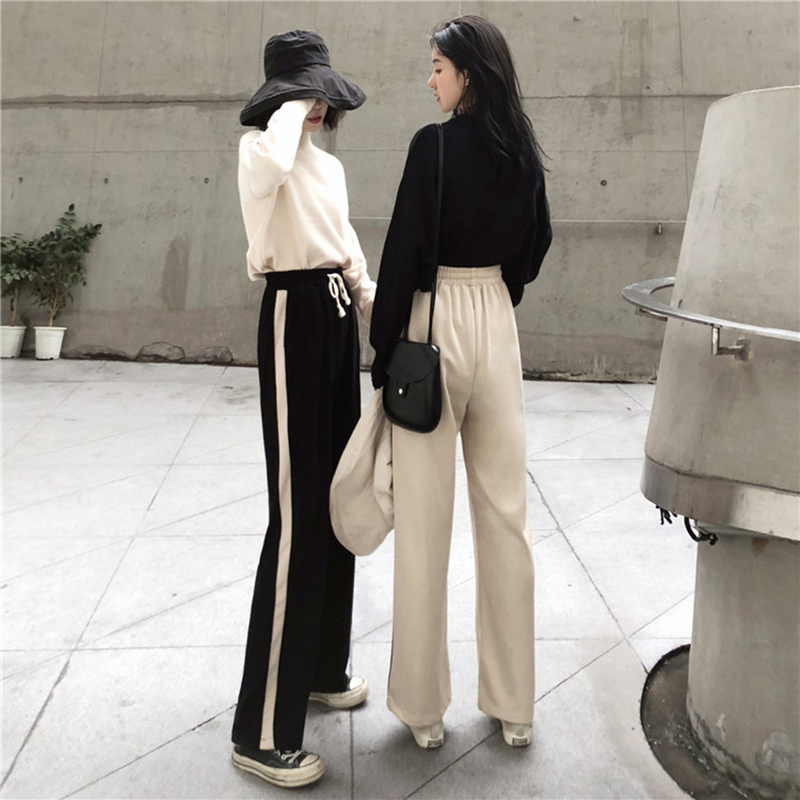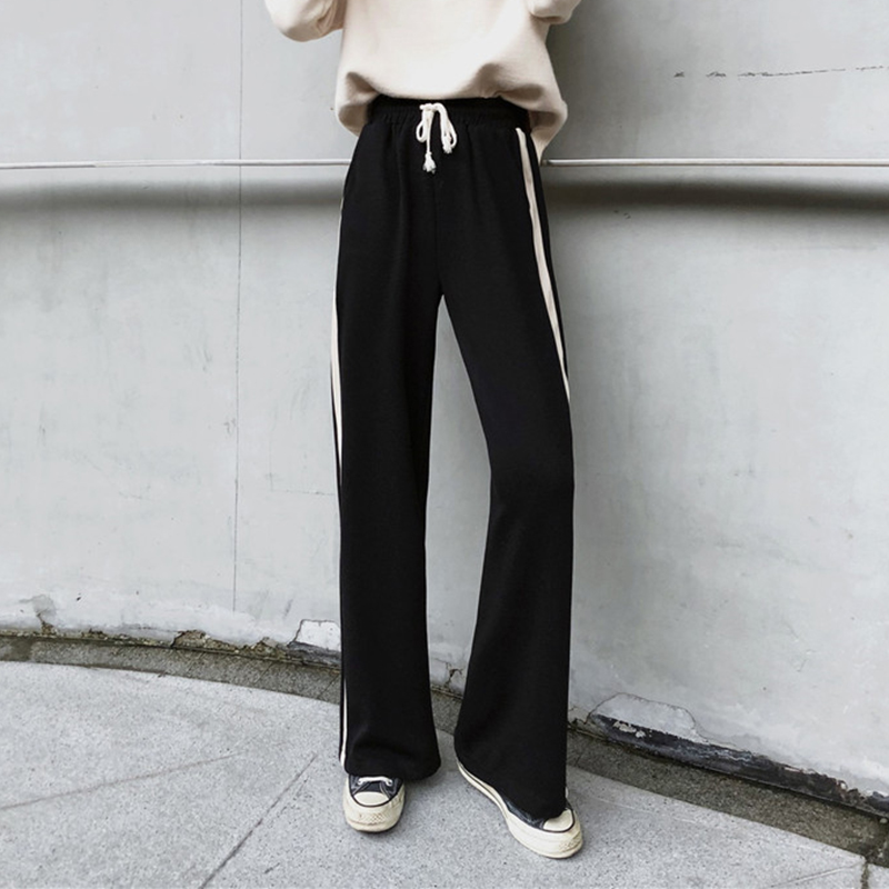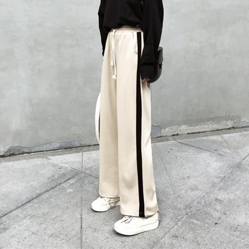 休閑長褲子秋裝女2018新款韓版個性拼色直筒褲學生時尚高腰闊腿褲