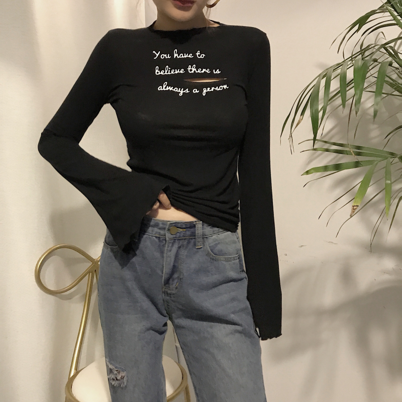 2018顯瘦百搭韓版秋季新款舒適純色花邊針織衫氣質長袖T恤打底衫