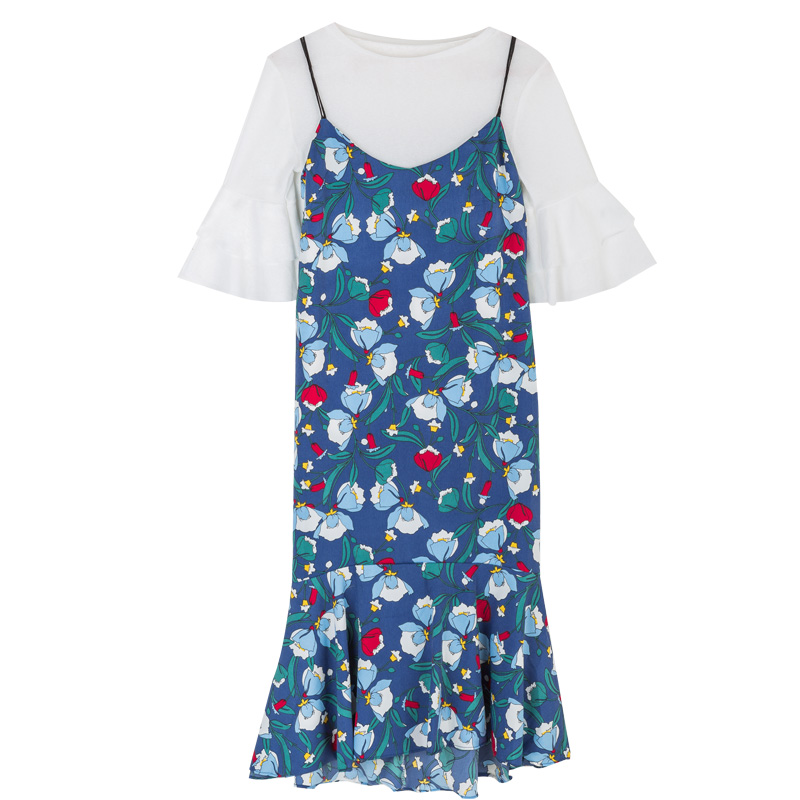 / 連衣裙女夏裝夏季喇叭袖套裝吊帶中長款學生兩件套雪紡裙子潮