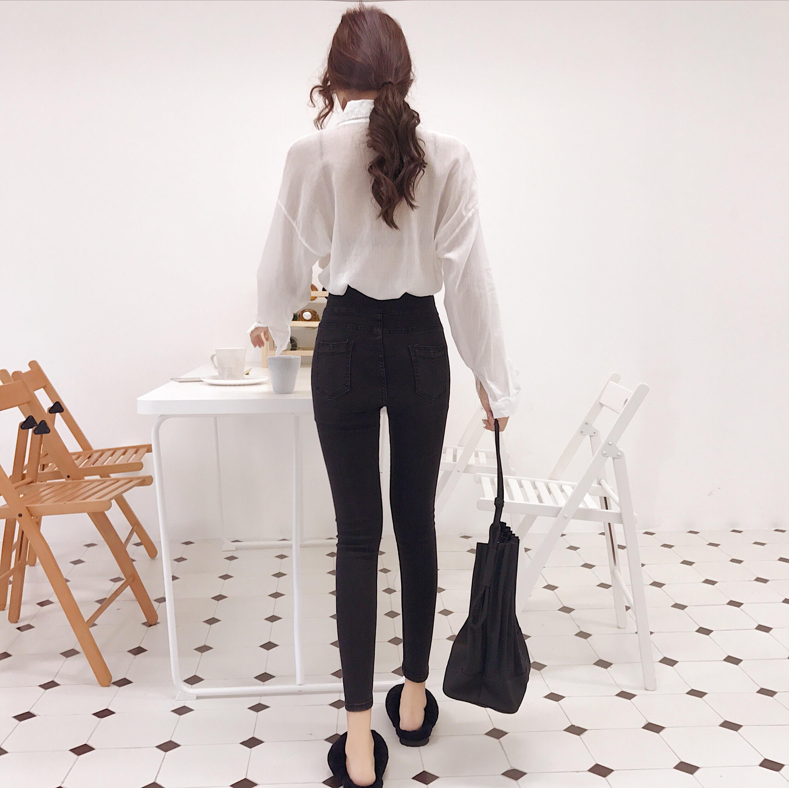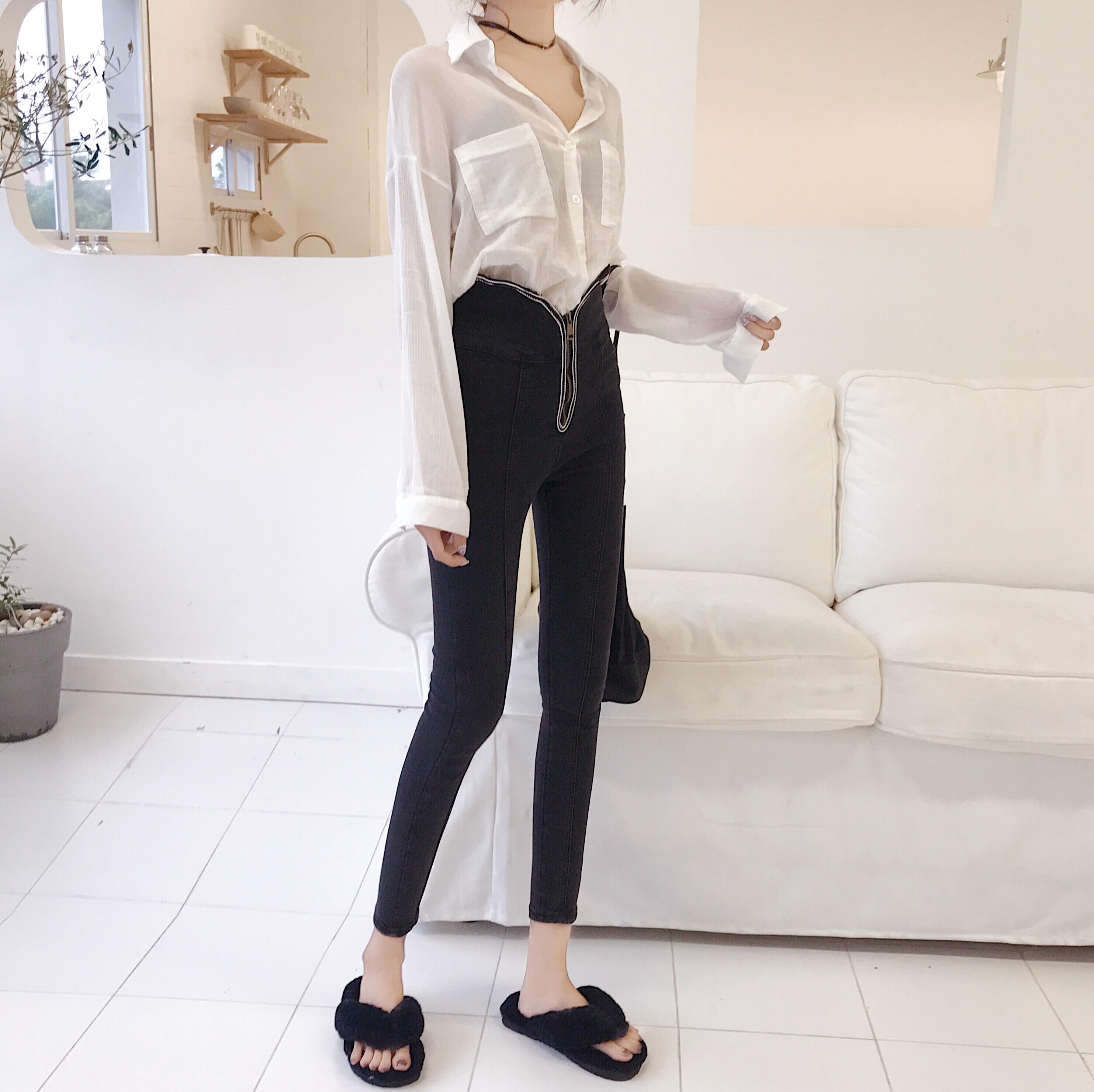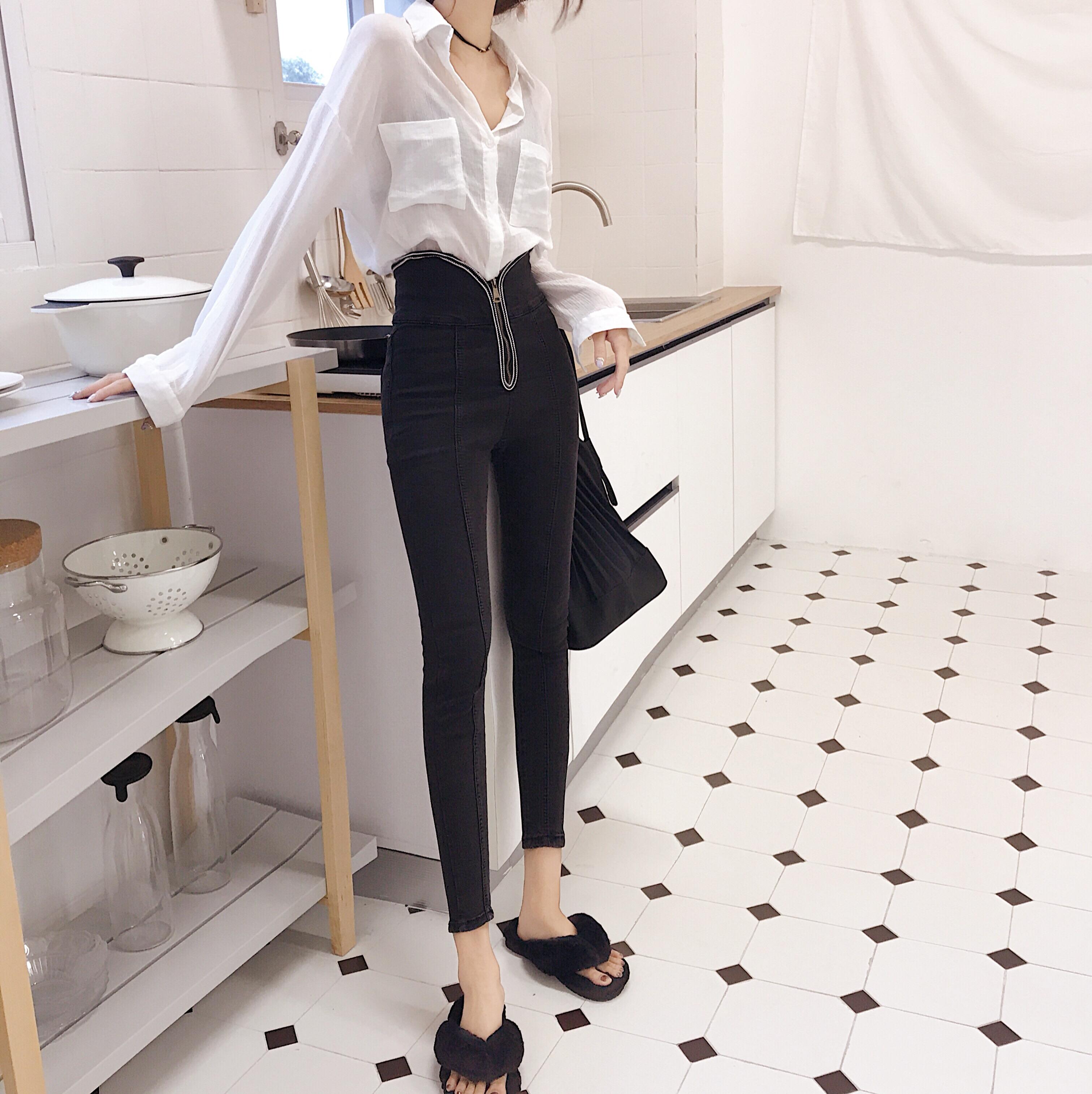 chic風褲子韓國高腰顯瘦緊身彈力牛仔褲女秋冬2018新款拉鏈鉛筆褲