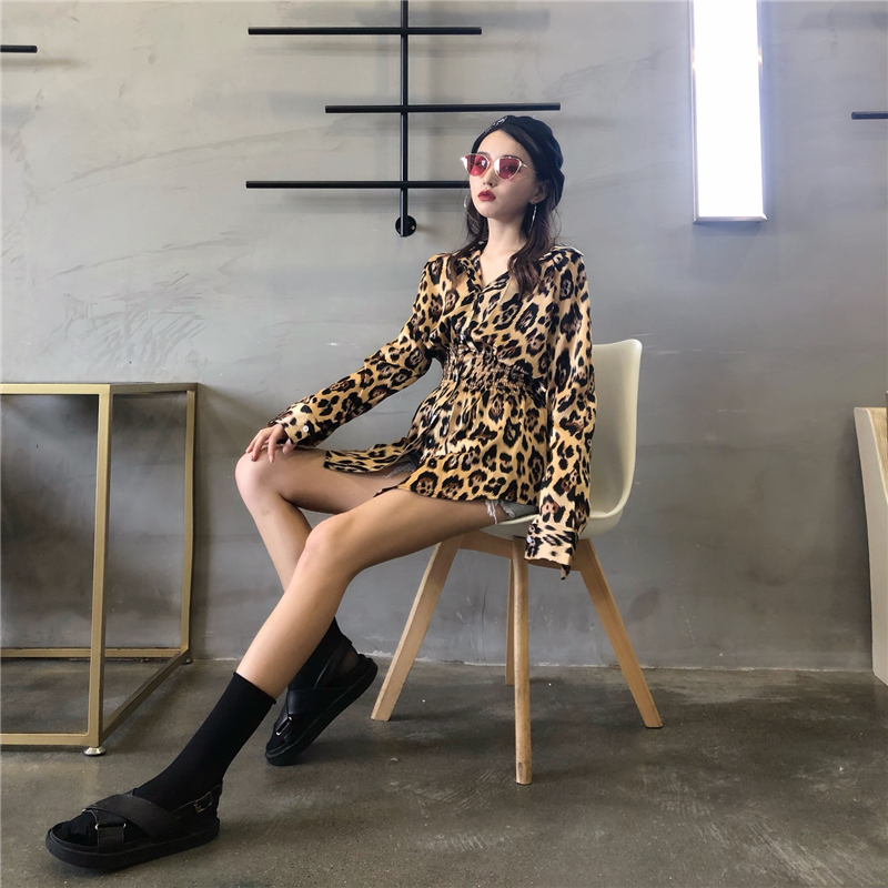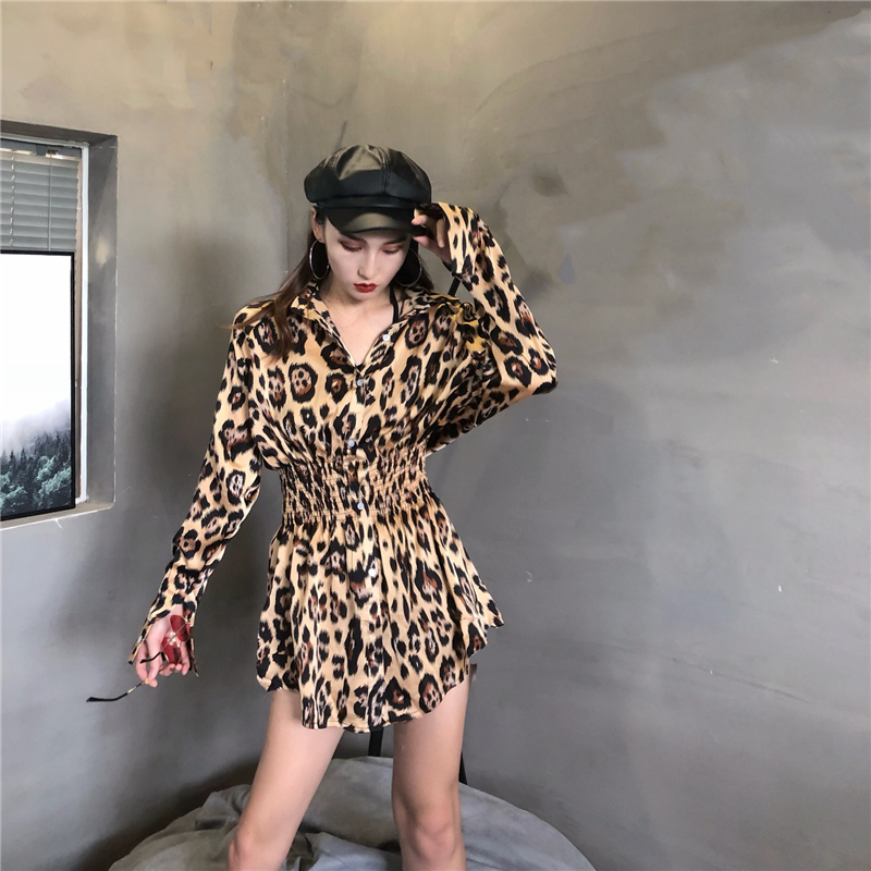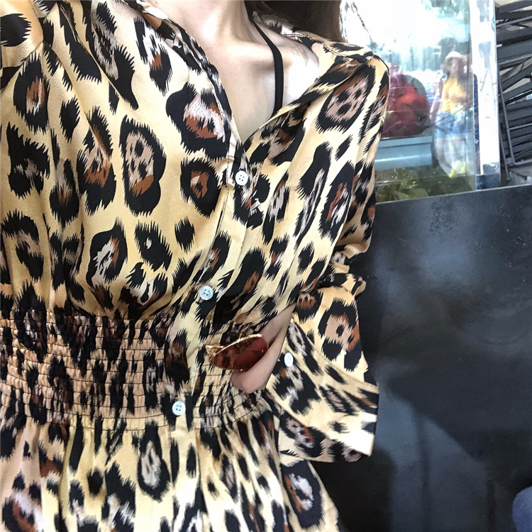 / 港味簡約時尚氣質百搭復古chic豹紋秋季新款韓版收腰中長款襯衣女